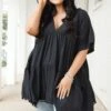 We simply adore this top! It features a versatile black hue offers a flowy fit, making it perfect for any casual outing! This neutral color complements any wardrobe, making it a must-have for any fashion-forward individual! Enjoy effortless style and comfort with this top!