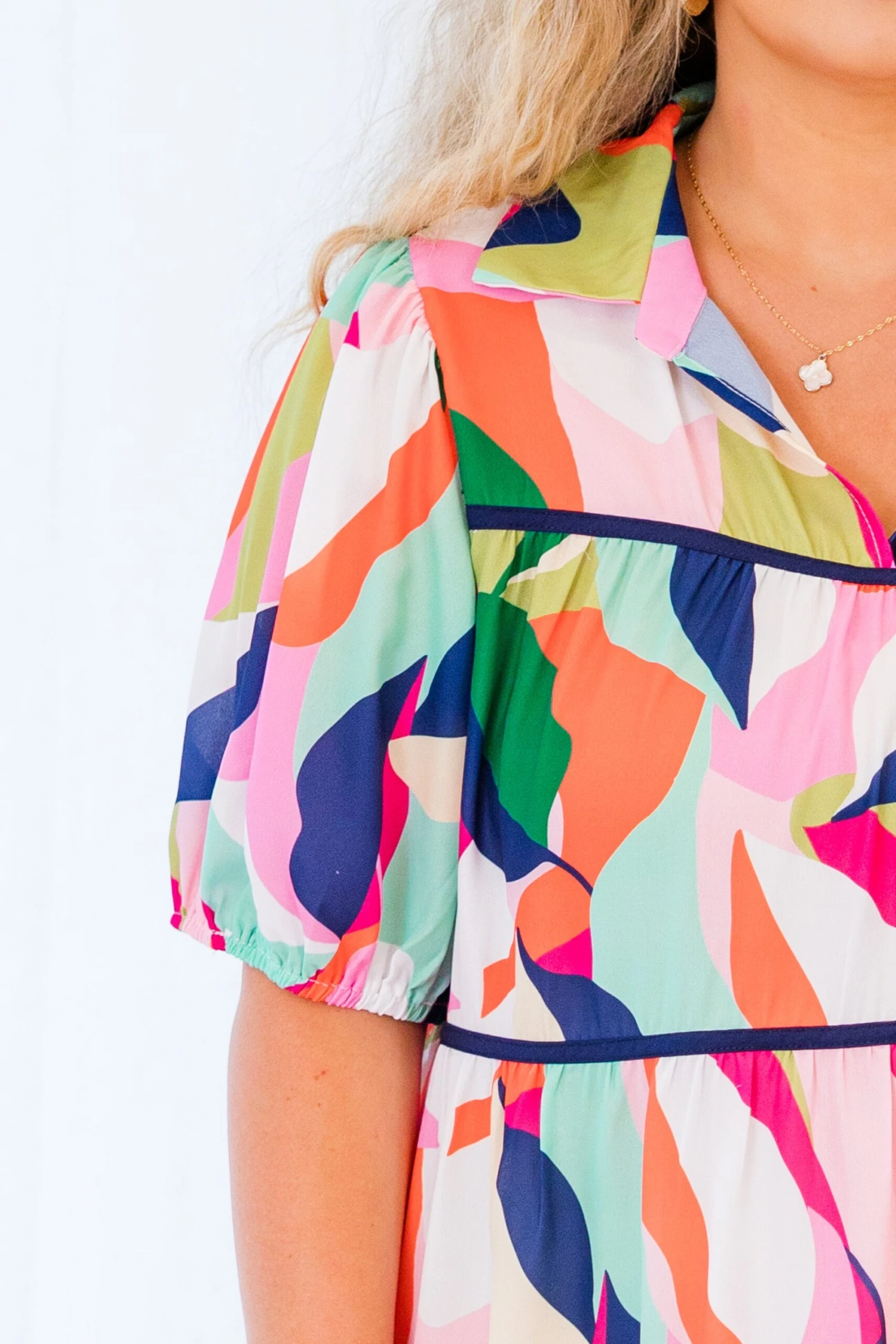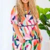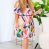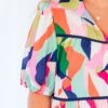This Art Pop Dress is a colorful masterpiece, featuring bold hues of pinks, blues, greens, orange, and white! The collared v-neckline adds a touch of sophistication to this eye-catching dress! Perfect for standing out from the crowd and showcasing your unique sense of style!
