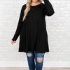 As long as you’re here you might as well grab this cutie! This tunic has a classic black color with a comfy, stretchy fit that is so easy to pair with all of your faves! It’s figure flattering and flowy great for all day wear! Style this top with skinnies or leggings for a chic casual look!