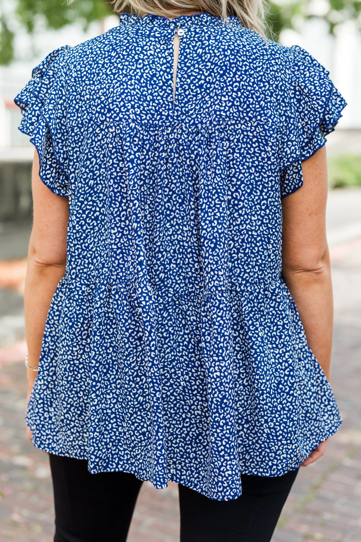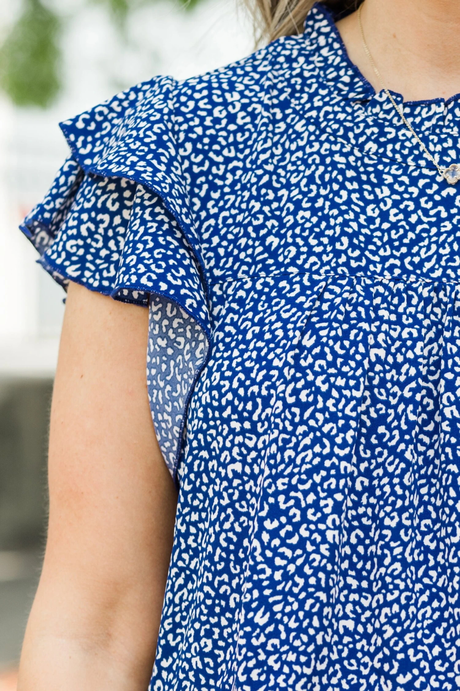 Grab this beauty right now before it’s too late! Featuring a stunning leopard pattern and a lovely blue-white color, this top is perfect for any occasion! Its flutter sleeves add a touch of femininity, making it a versatile piece for both the office and a night out! Elevate your wardrobe with this must-have top!