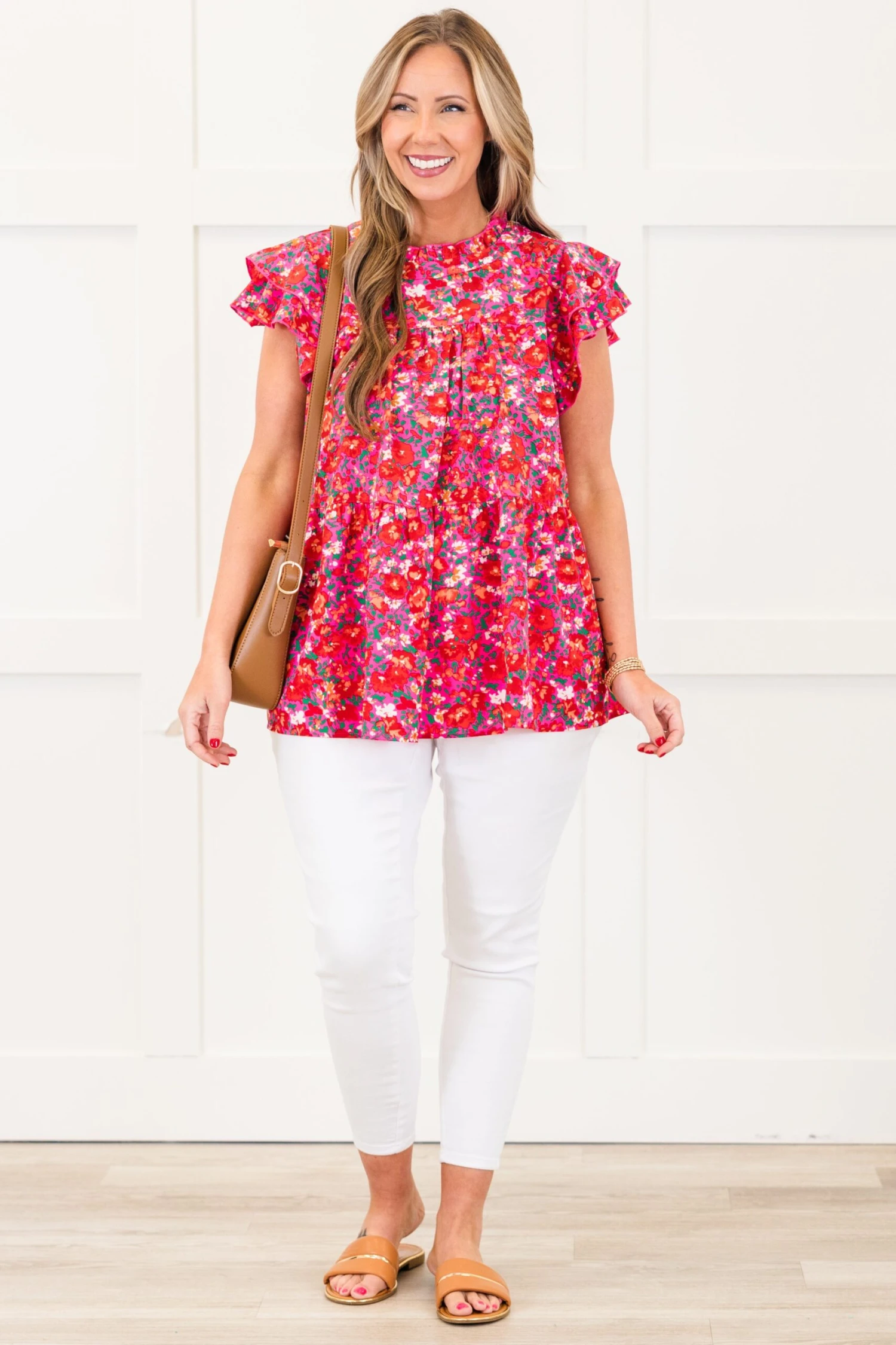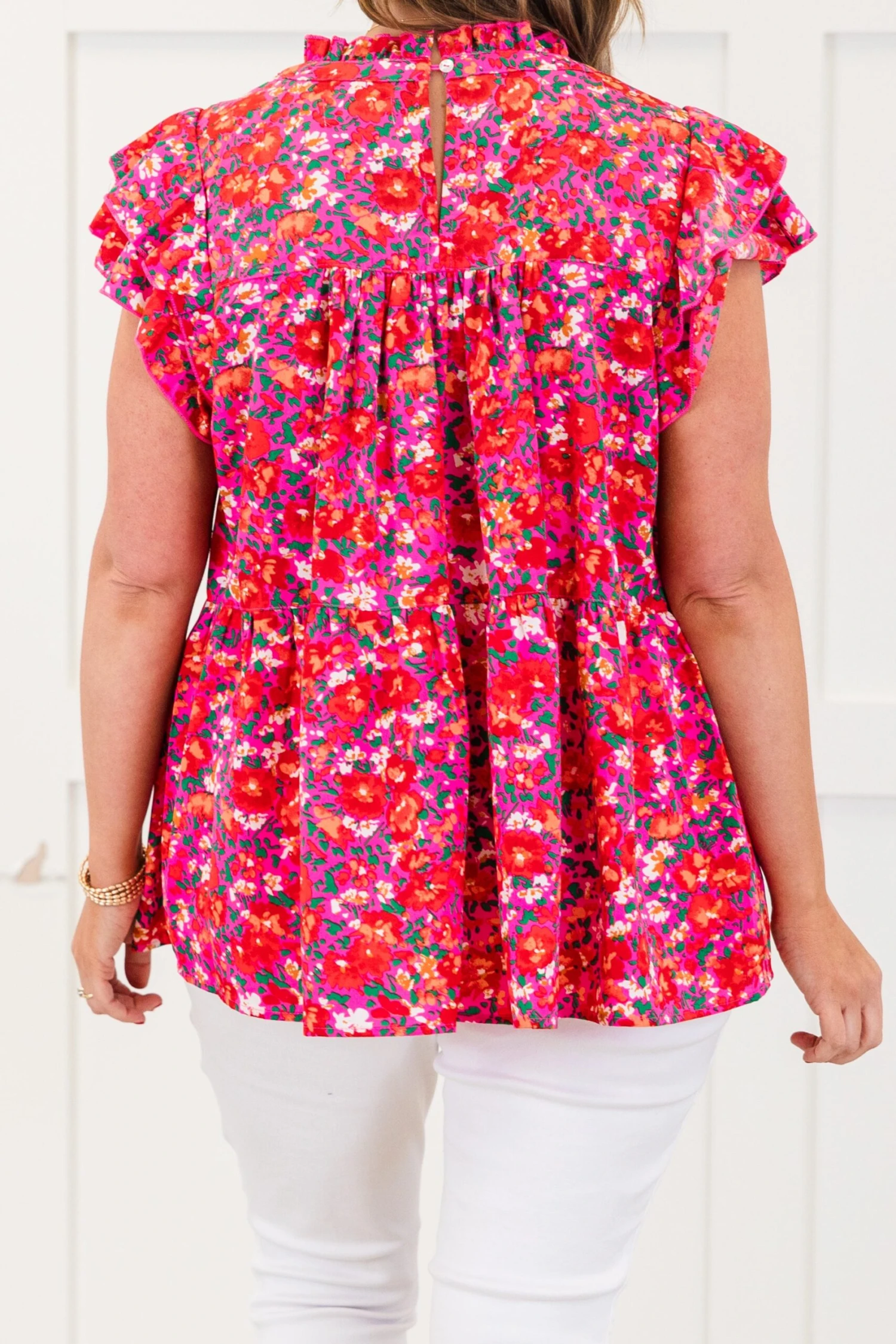 Grab this beauty right now before it’s too late! Featuring a stunning floral pattern and a lovely pink color, this top is perfect for any occasion! Its flutter sleeves add a touch of femininity, making it a versatile piece for both the office and a night out! Elevate your wardrobe with this must-have top!