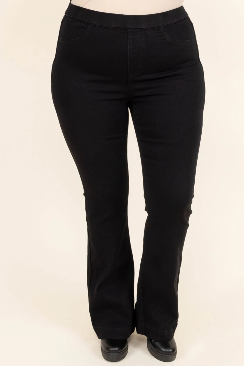 These jeggings belong anywhere but the ashes! These jeggings have a classic black color with a sleek flare design you can dress up or down for every occasion! They are comfortable for all day wear, have a figure-flattering fit, and can be worn with all of your faves! Style these jeggings with a cute top and accessories for an easy everyday outfit!Â