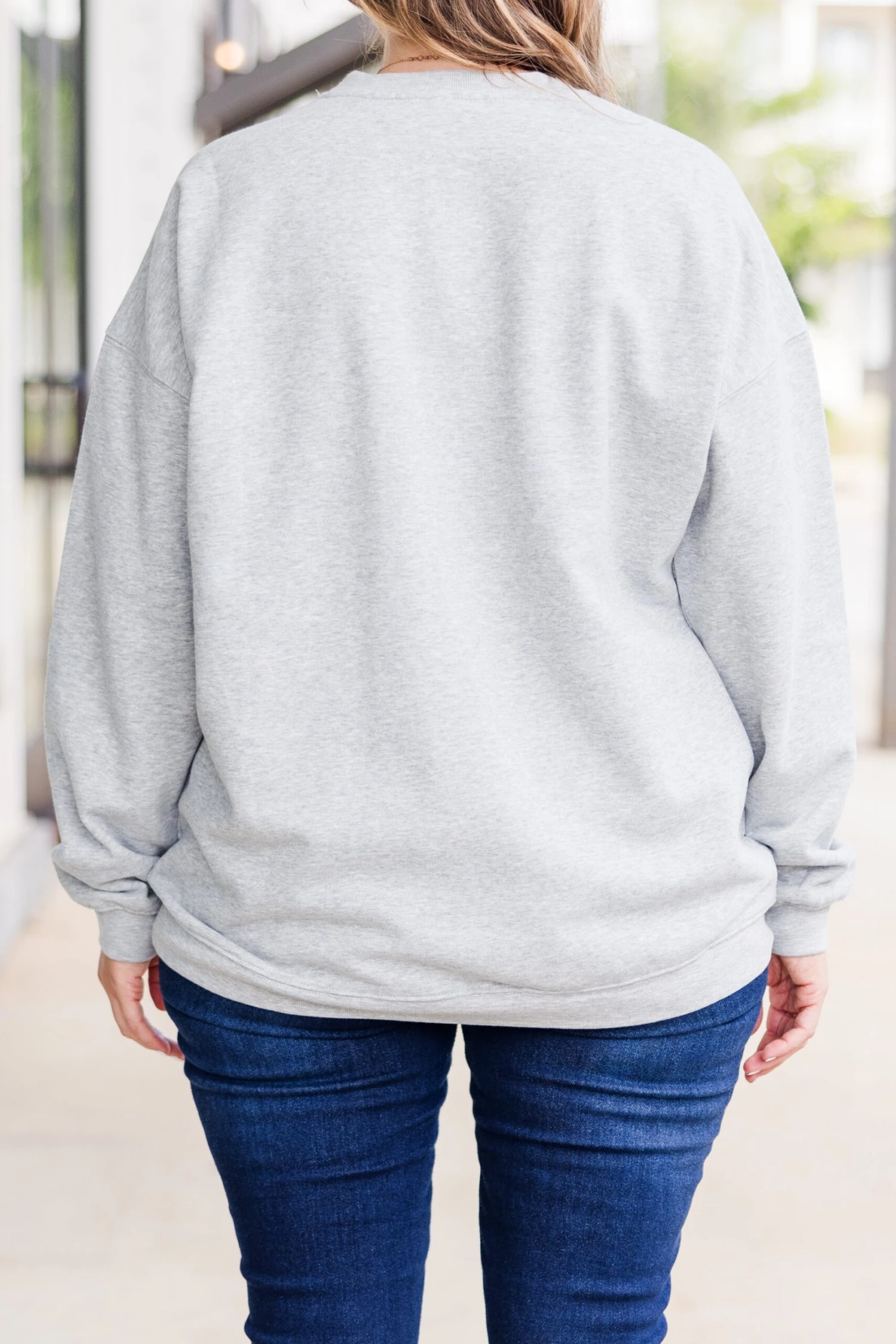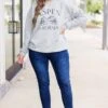 This sweatshirt is a cozy, classic option crafted from heather gray fabric! Featuring an adorable graphic, it pairs perfectly with your favorite skinnies or leggings for a relaxed, stylish look! Enjoy the comfort and style of this classic piece!