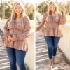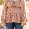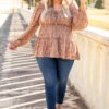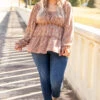We found the perfect top at last! It has a sweet brown color with a funky floral print that you are sure to love! It also features a cute tie at the top plus a flattering babydoll fit. Style this cutie with jeans and booties for fun, cute look!