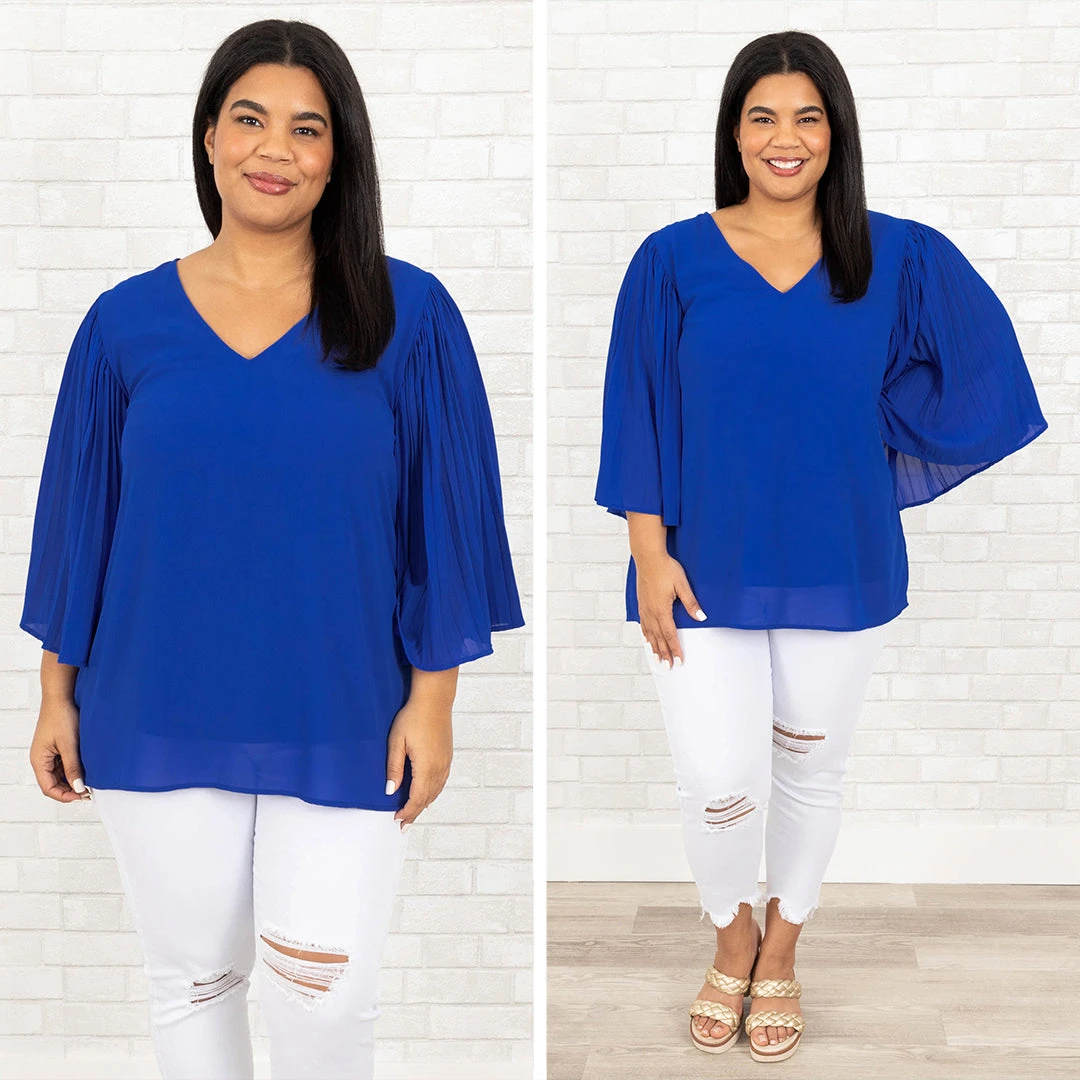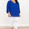 The feeling you’ll get from this top is definitely authentic! The solid royal color with the bell sleeves is so sweet! The flowy, flattering fit pairs well with all of your favorite bottoms and accessories for a classic chic look!