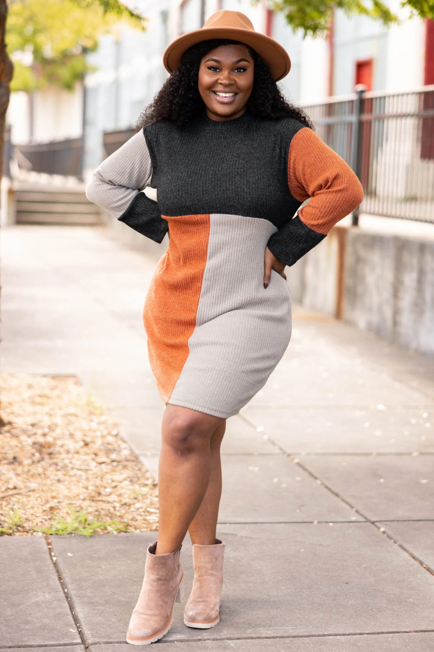 Take a stroll through town in this beauty! This dress has a gorgeous color mix that is just in time for the season! The ribbed texture and flirty fit is perfect for a date night or cute casual event! Pair this dress with heels or booties for an effortlessly chic look!