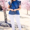 We are so in love with this top! It offers a lovely aesthetic with its flutter sleeves, high neckline, and versatile pairing options! The chic back tie is super cute! Elevate your style with this chic piece, perfect for completing a classy and sophisticated look!