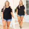Baby love, oh how you need this top! The cutie has a lace design that is absolutely stunning and the cold shoulder look is so trendy! The black color can match anything you want and the material is so comfy and stretchy! Style this with some jean shorts and sandals for a stylish look!