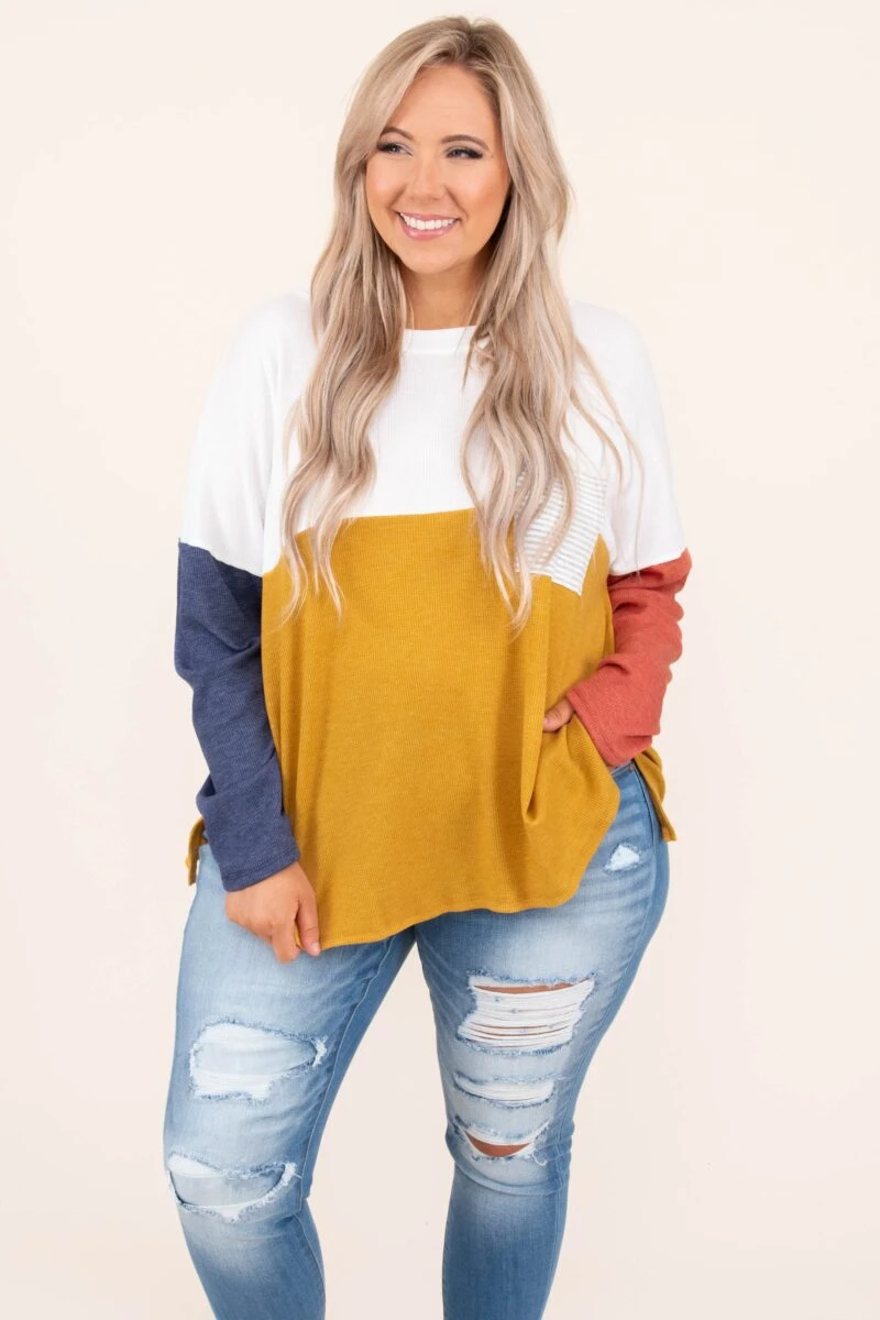 You’re gonna come back for this top, so might as well get it now! This top has a chic color block pattern with colors you can dress up or down and pair with your favorite accessories! It’s oversized, comfortable, and perfect for the new season with a chic bold pocket! Simply style this top with sandals or booties for an effortlessly chic look!