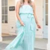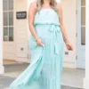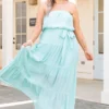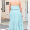Enjoy the Spring breeze wearing this beauty! This dress has a lovely aqua color with a strapless design that is so flirty and chic! The maxi length and flowy fit is great for any occasion! Style this dress with wedges or sandals for a sassy chic look!