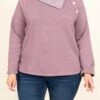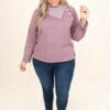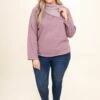 Take an adventure this season in this adorable top! This top has a fabulous mauve color and a trendy asymmetrical neckline that is so sweet! The cozy, stretchy fit is perfect for the season! Style this top with skinnies and booties for a casual chic look!Â