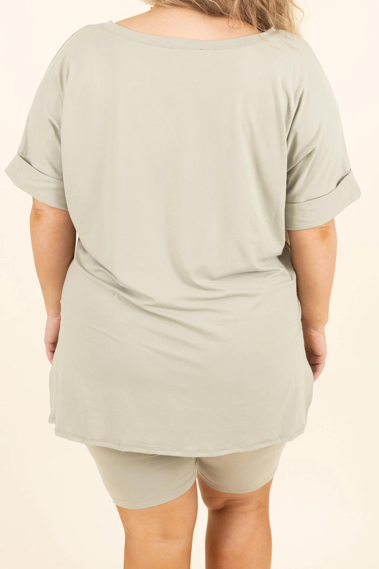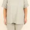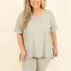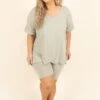 This gorgeous set is definitely a necessity! The pretty light sage color is just in time for the season and the comfy fit is perfect for all day wear! The stretchy, figure flattering fit of the top and bottom make this set a must-have! Pair this set with some cute accessories and sandals or sneakers for an everyday chic look!