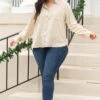 You will basically never want to take this top off! The distressed hem is so stylish and the button down look is so trendy! This cutie can be worn layered over a tee or on its own for the perfect look!