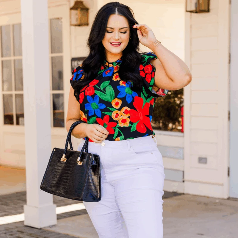 You’ll be in a flutter of you miss out on this cutie! Featuring elegant flutter sleeves and a flowy fit, this top is perfect for any occasion! The black color and floral pattern add a touch of sophistication to your outfit! Easily pair it with a blazer and cute pants or skinnies and heels for a chic and classy look!