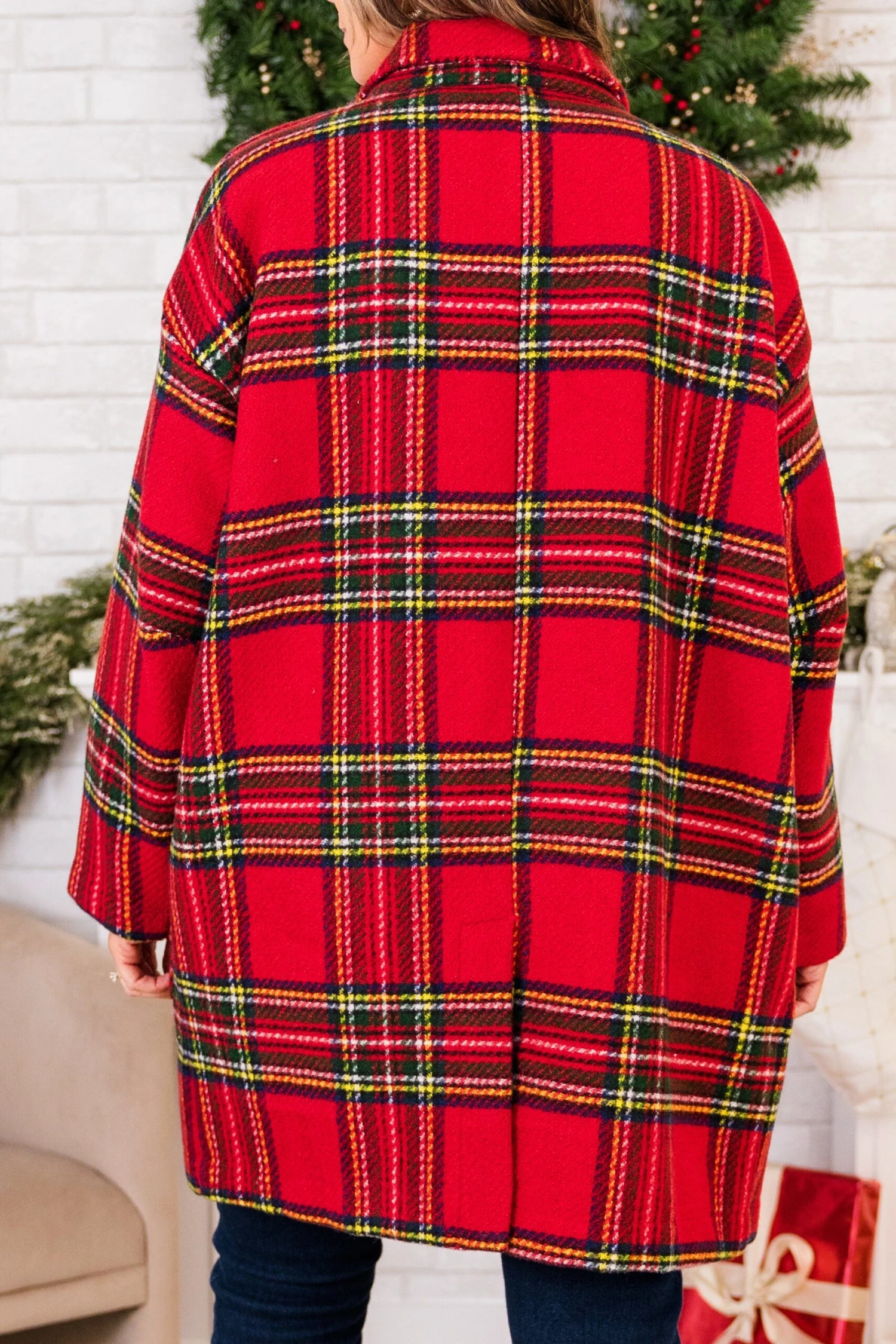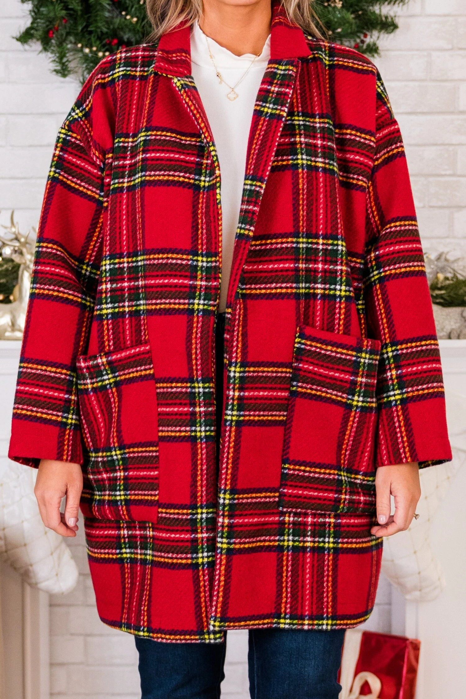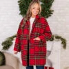 Introducing the Be Merry Jacket in stunning red multi! Crafted with a classic tartan plaid and a relaxed shape, this open front coat exudes sophistication! Complete with a notched lapel and patch pockets, this luxurious jacket is perfect for adding a touch of elegance to any outfit!