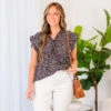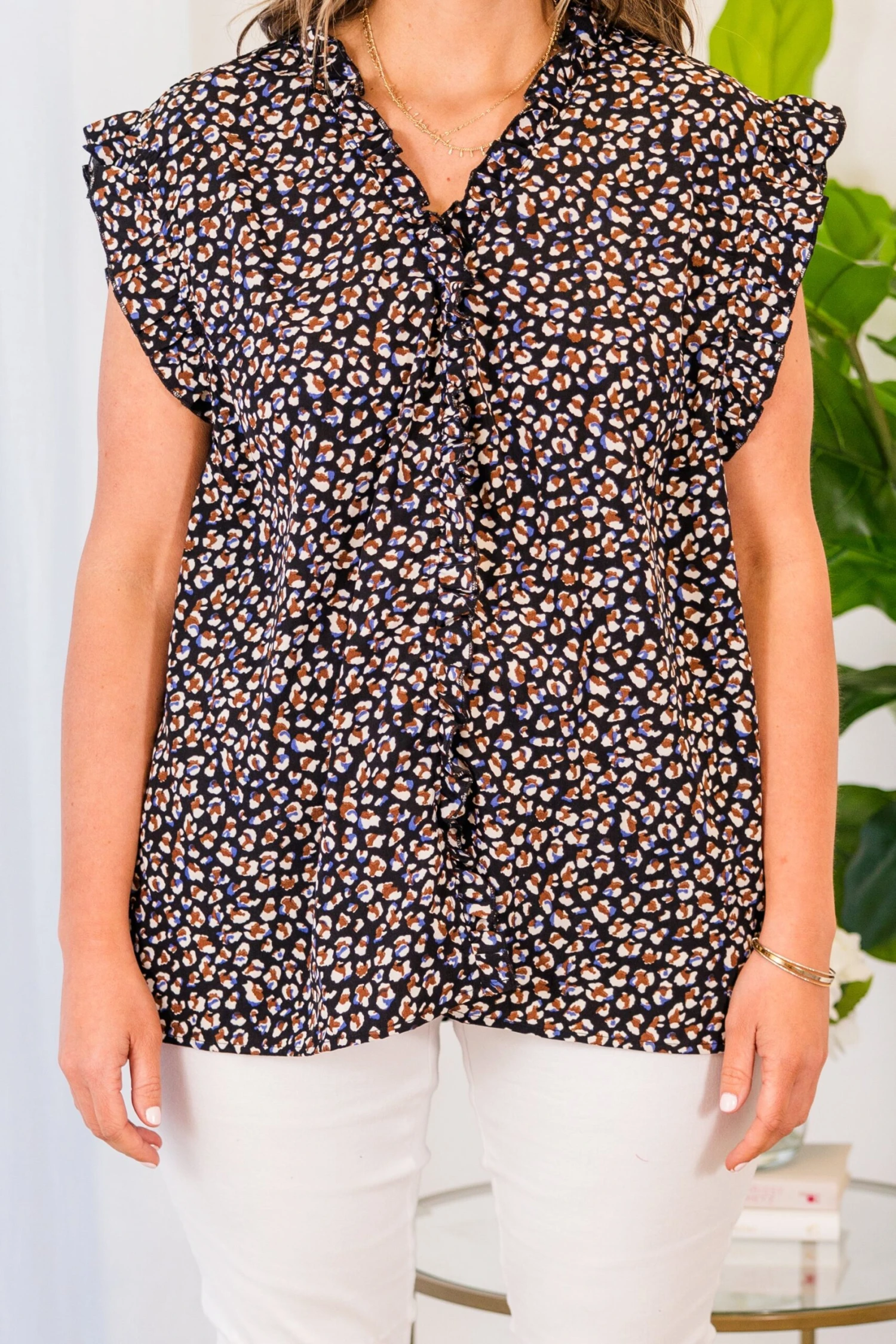 Get ready to be on top of your time with this playful and versatile top! Featuring flutter sleeves, a bold leopard pattern, and delicate ruffle detailing, this top is perfect for both day and night! Whether you’re heading to the office or out on the town, this top has got you covered with style and fun!