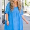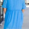 Look effortlessly charming in our Be Spotted Dress! With delicate swiss dot detailing and a fully lined design, this deep sky dress is perfect for any occasion! Its babydoll style adds a playful touch to your wardrobe! Get ready to turn heads!