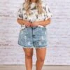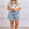 These shorts are perfect for your next beach hangout! These shorts have a classic medium wash you can style with everything in your wardrobe! They’re comfortable for all-day wear, have a figure-flattering fit, and feature the trendiest distressing! Simply wear these shorts with a flowy top and sandals for an easy everyday look that’s sure to keep you cool!
