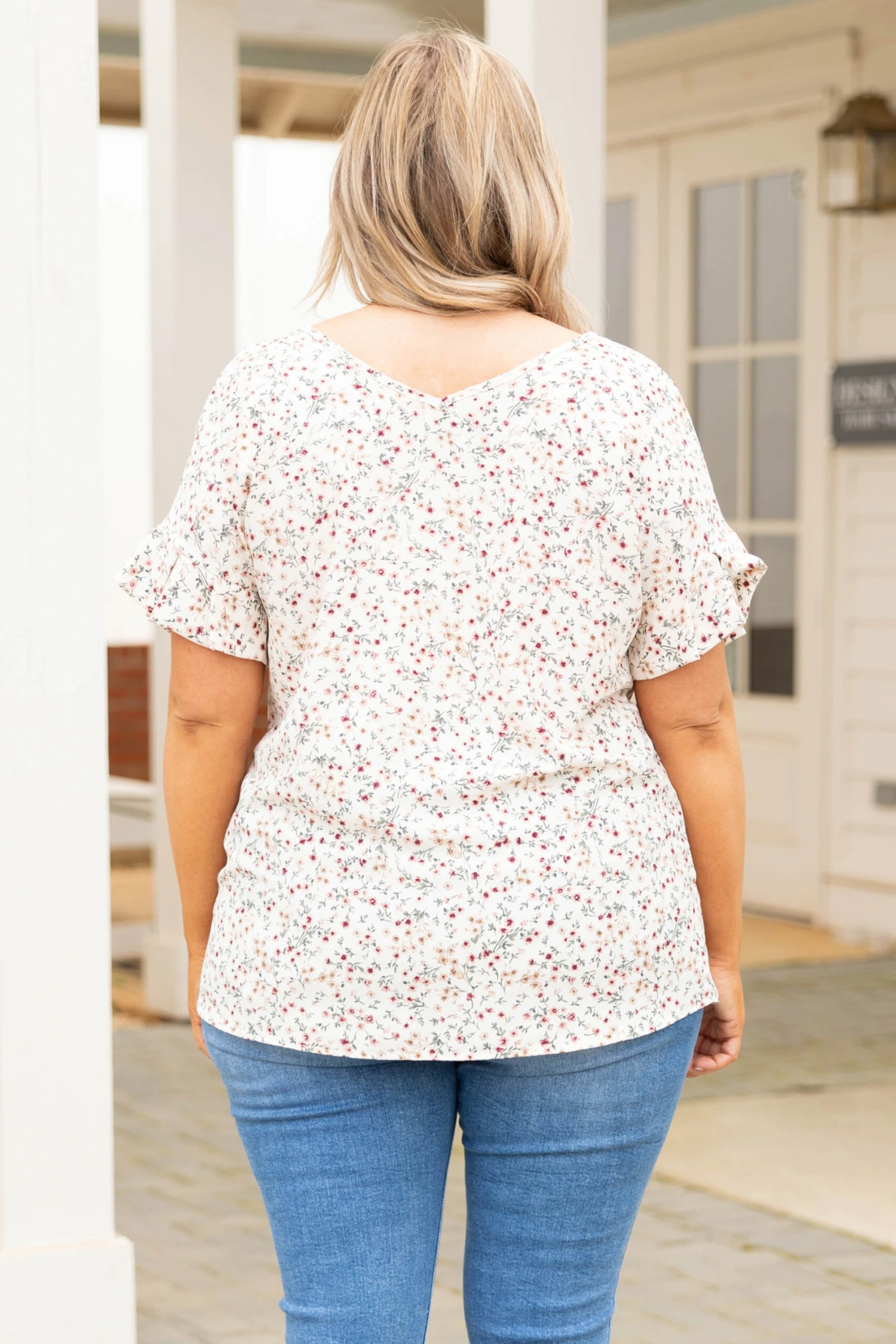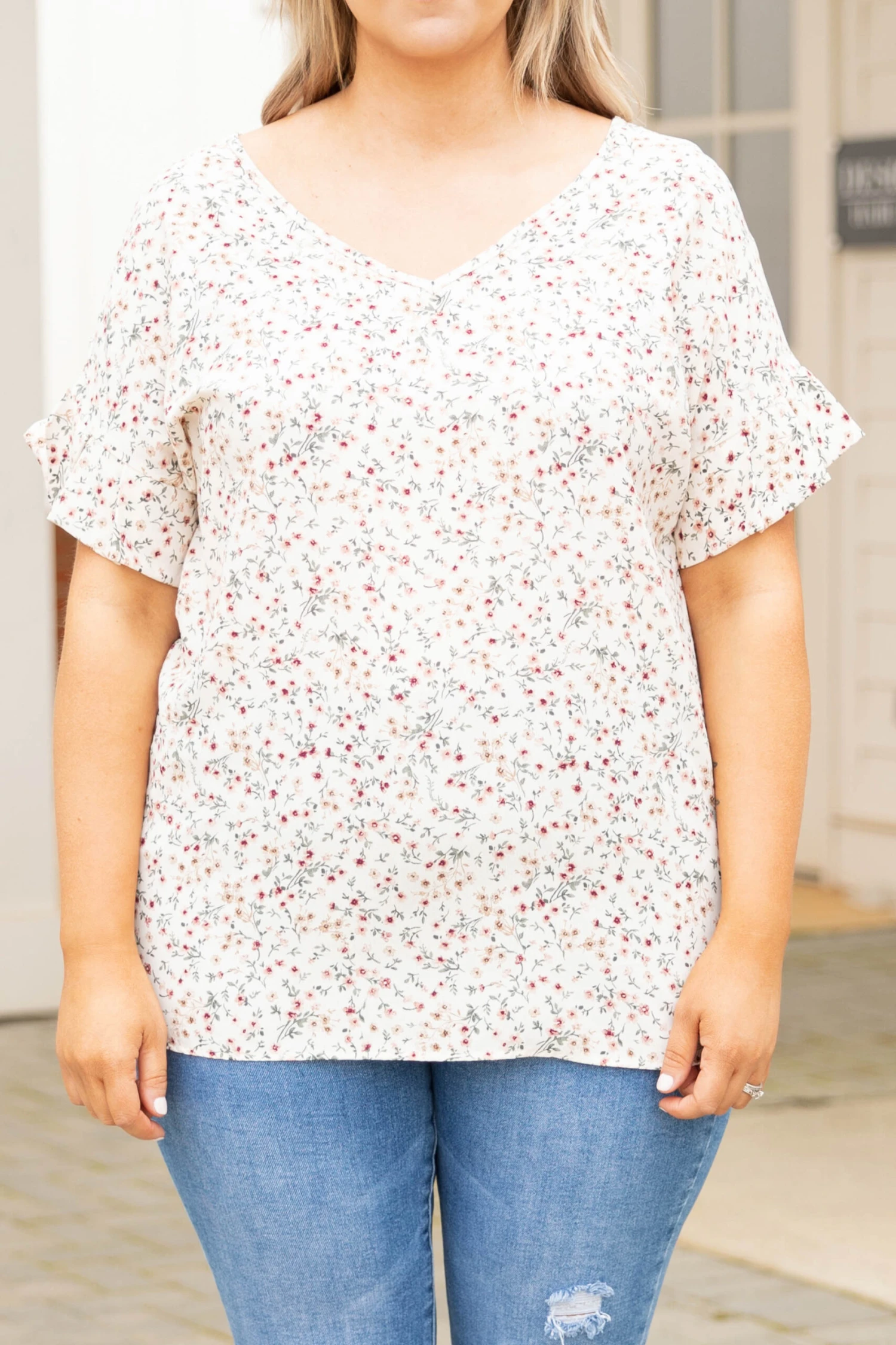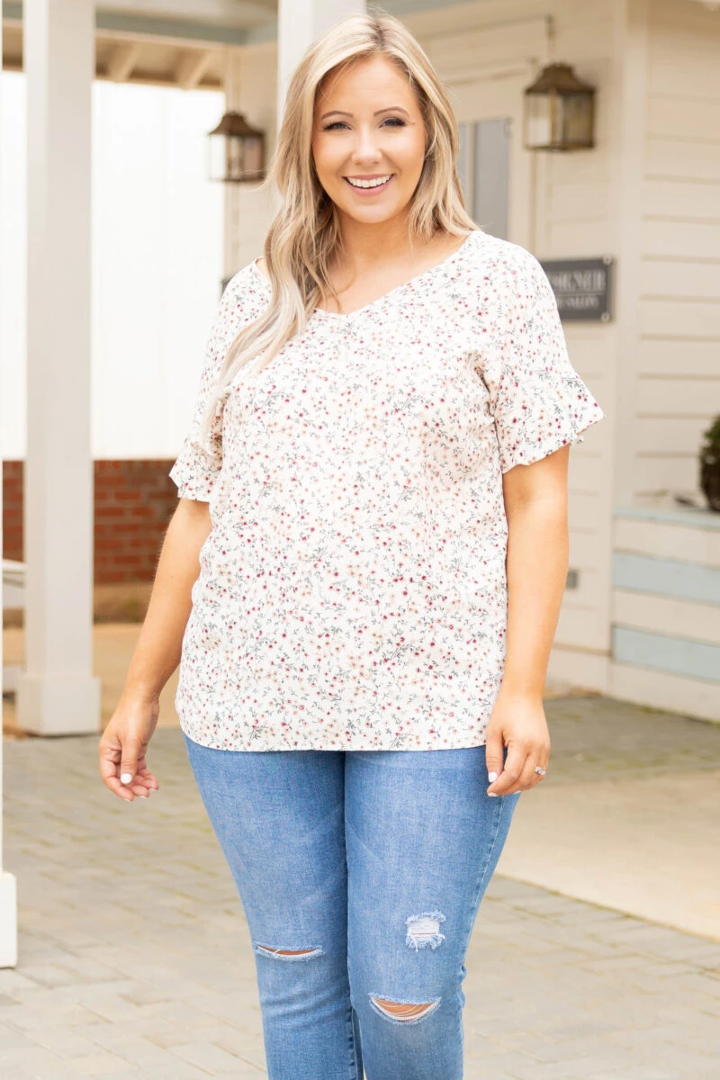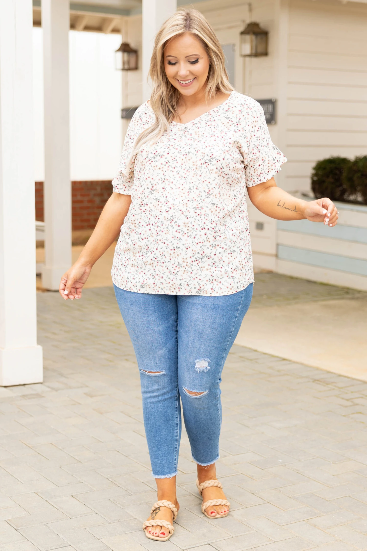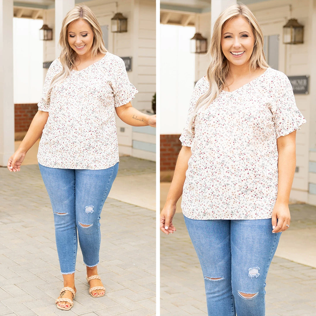 Create some beautiful memories in this top! The neutral color can match anything and the floral pattern is so stunning pair this with skinnies and sandals for a look that will impress!