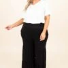 We are so in love with these pants! The solid black color is so easy to match with any top and the high waisted style supports you in the best way! These have a super unique tiered style and the material is SO soft you could sleep in them! Style them with a basic top and some sandals for a super stylish look!