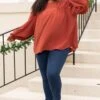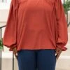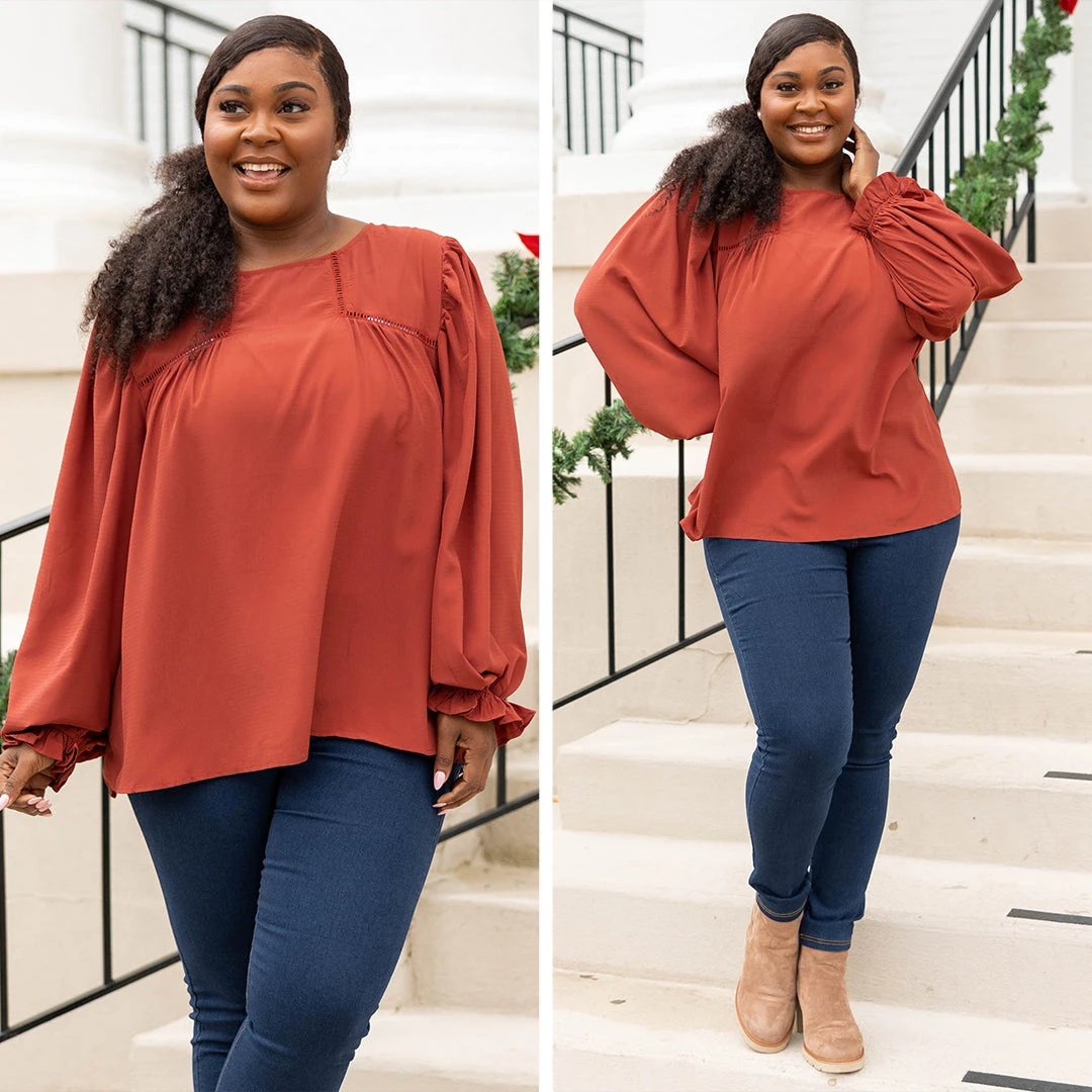 You won’t have to put on a facade in this gorgeous top, you will look and feel beautiful! This top has a lovely rust color with lace details on the bodice! The bubble sleeves with the ruffled hemline is so sweet! Pair this top with skinnies and booties for an unforgettable look this season!