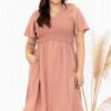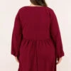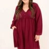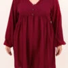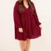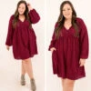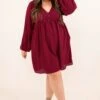 Add this dress to your cart before you go! It has a solid burgundy color you can dress up or down for every occasion! It’s comfortable for all-day wear and has a figure-flattering flowy fit! Style this dress with booties or heels for your next event!