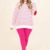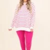 You’ll be used to looking amazing in this top! It has a bold hot pink stripe design that is so trendy and sweet! This top is stretchy, figure flattering and great for all day wear throughout the season! Style this top with some cute pants and sandals or wedges for a casual chic look!