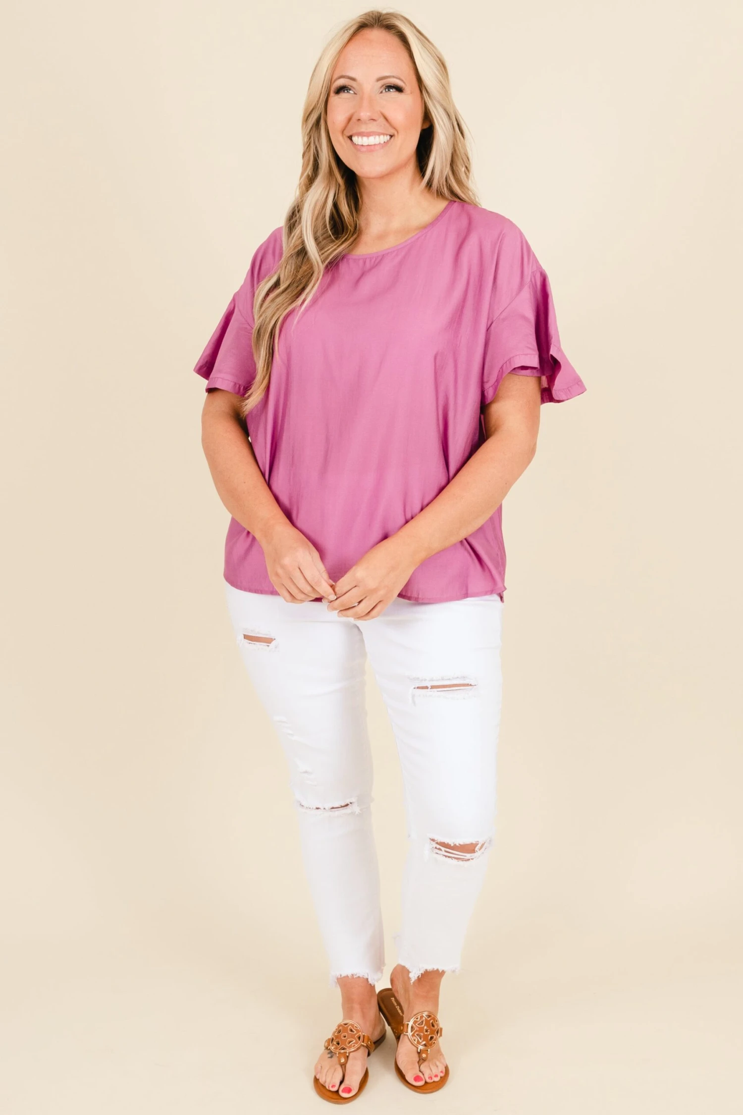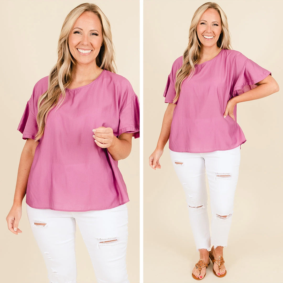 We bet this beauty will make you look and feel good! It has an impressive style and gorgeous orchid color that makes it perfect for any occasion! Its figure-flattering fit is sure to turn heads no matter where you go! Make a statement with this top all season long!
