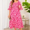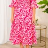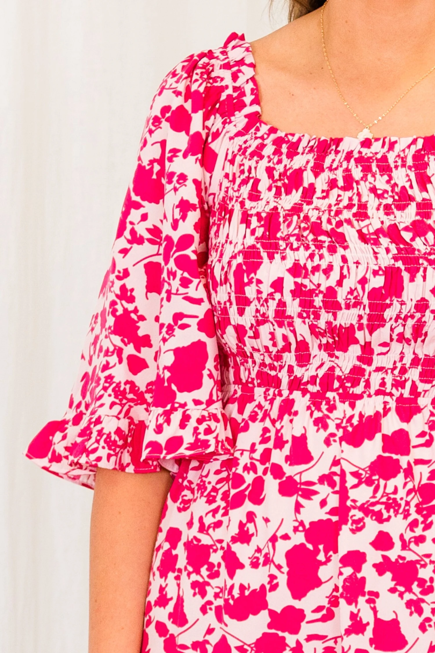 Discover the effortless elegance of the Better Than Nothing Dress in a stunning floral print and hues of pink! The square neckline and bell sleeves are complemented by a smocked bodice for a flattering fit, while the tiered midi length adds a touch of whimsy! Elevate your wardrobe with this must-have dress!