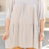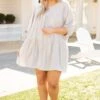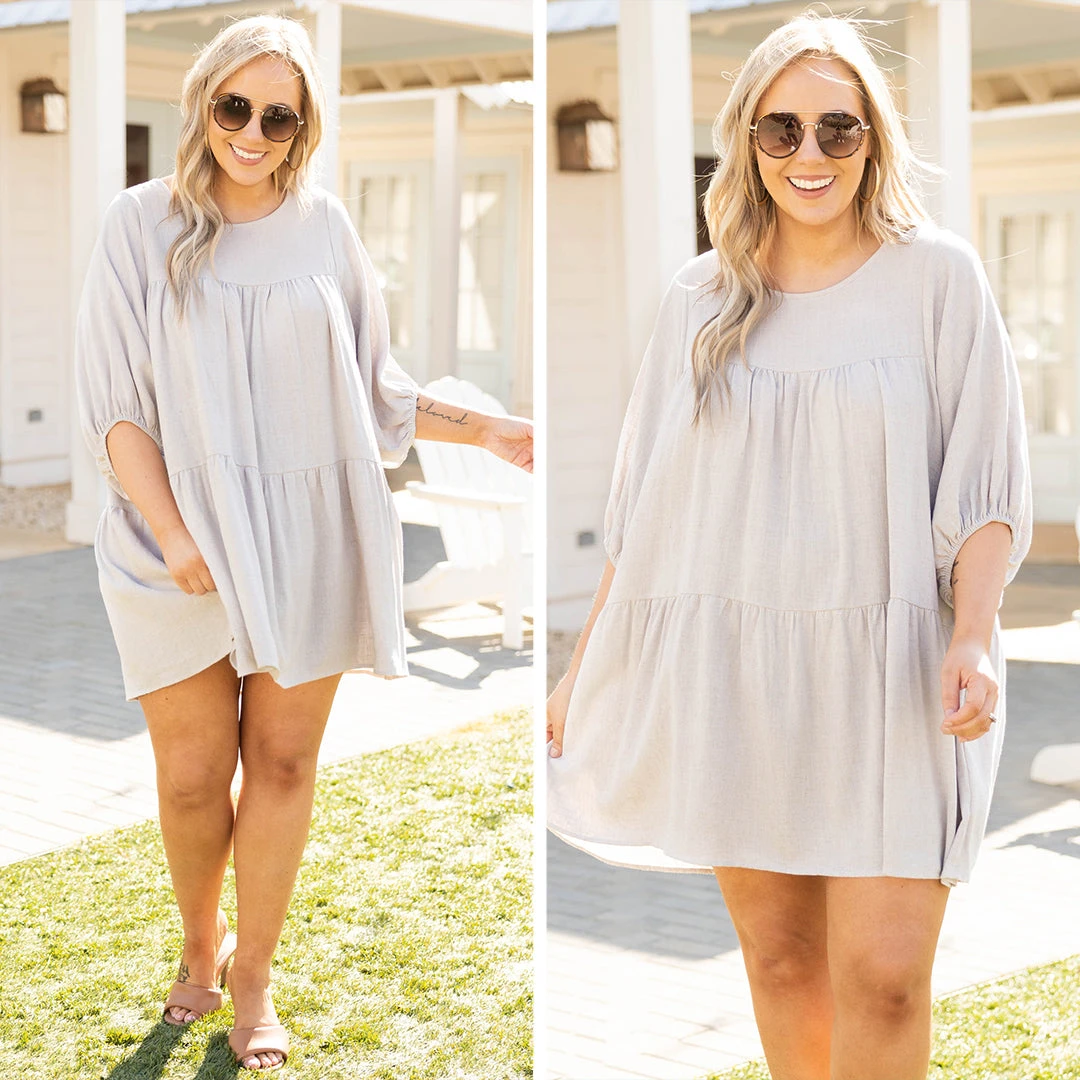 This dress will definitely have you in style! The oatmeal color is so perfect to match with whatever you want and the tiered style is so flattering! This cutie is perfect to throw on with some heels or wedges for a chic look!