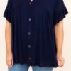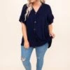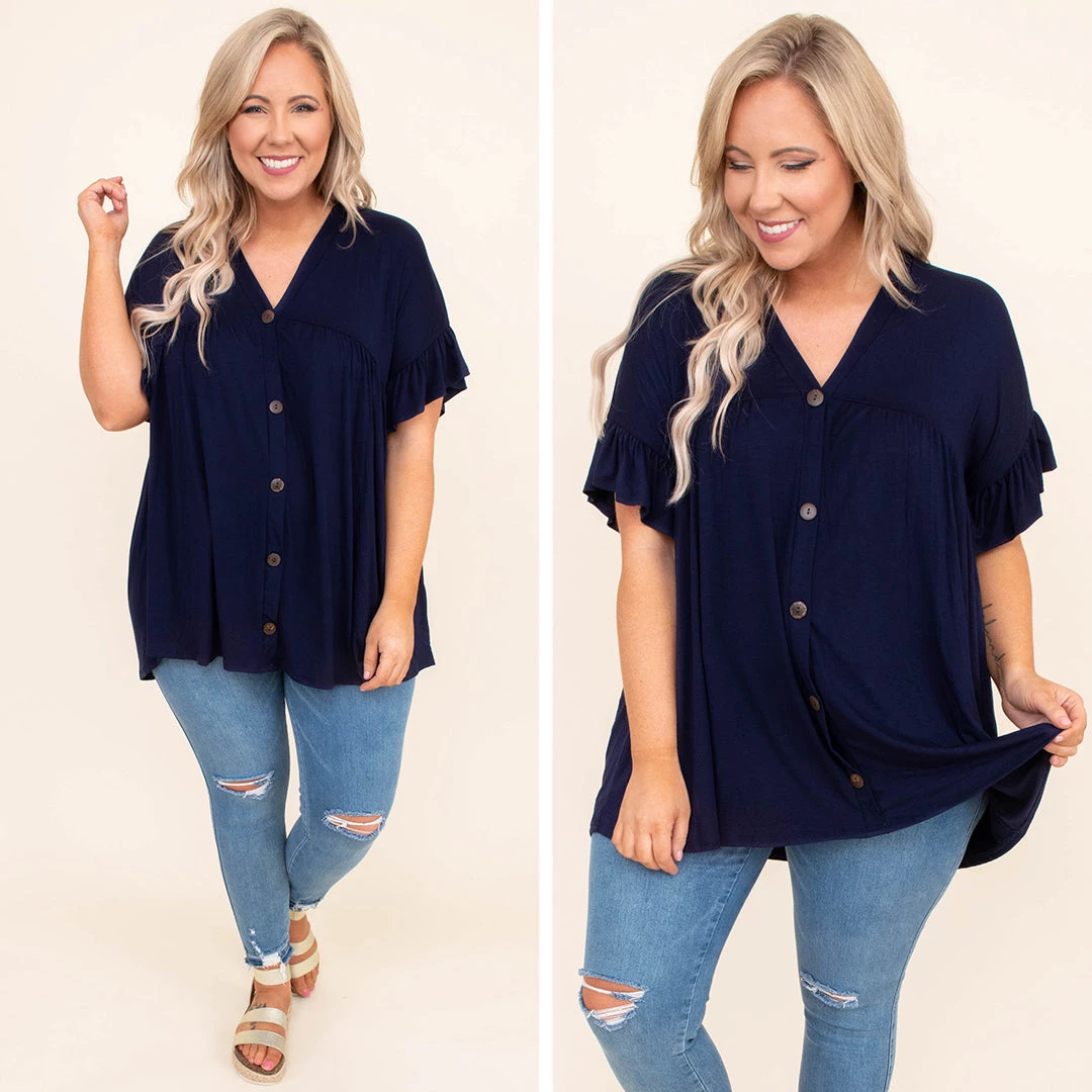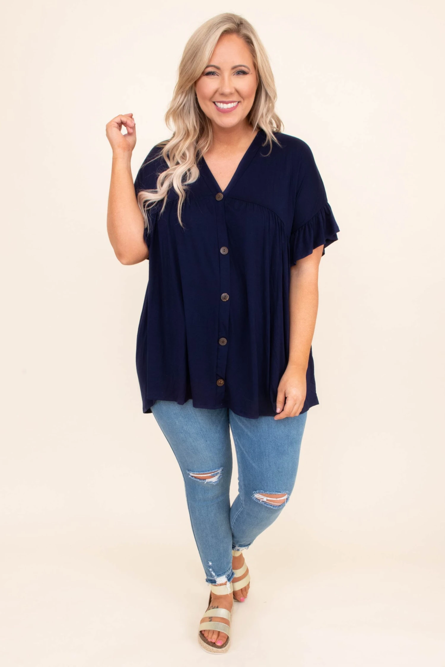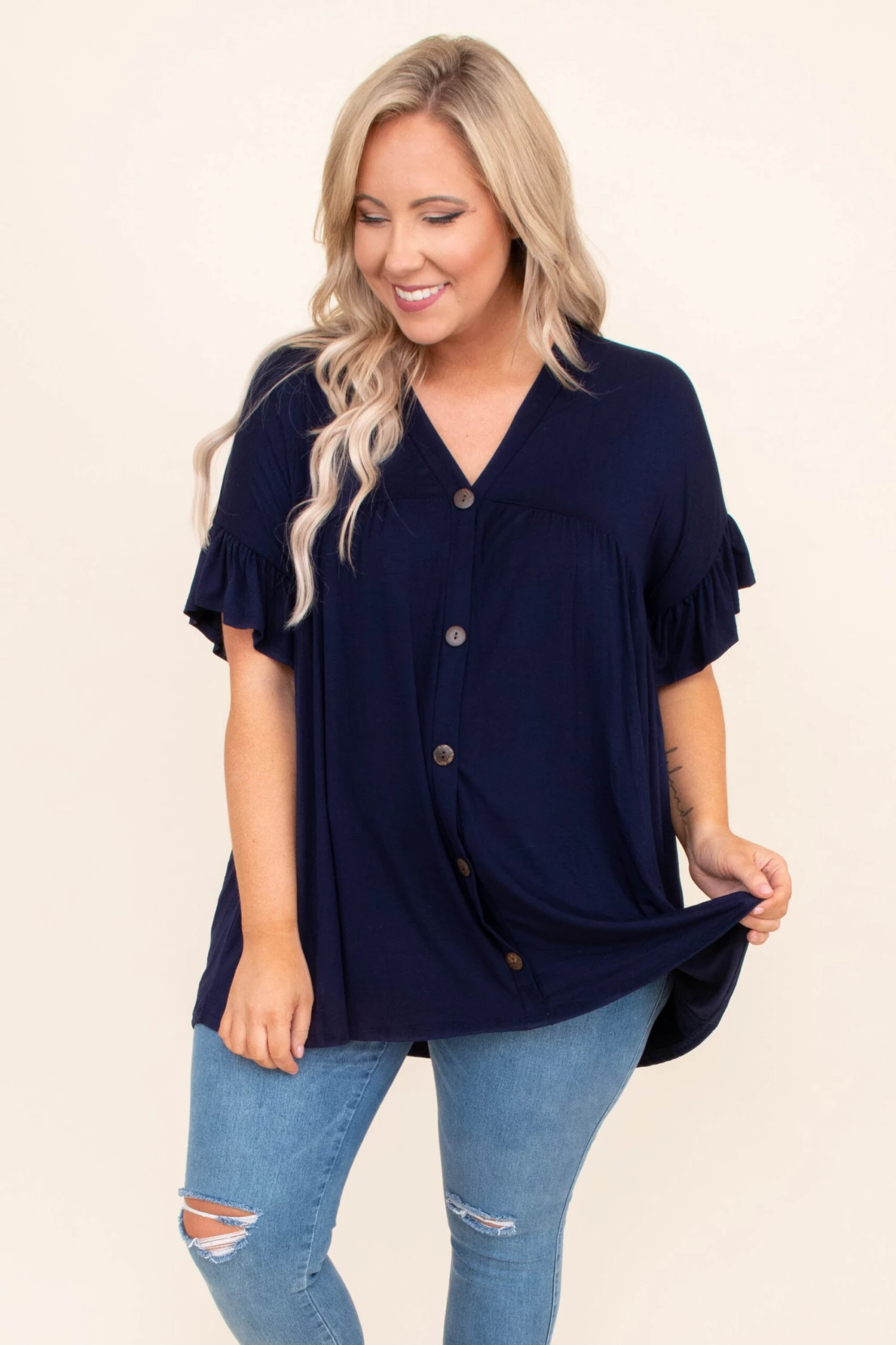 This top is too sweet! It has a flirty and feminine design with a figure-flattering fit you’ll want to wear all day long! It’s light and flowy and has the cutest ruffled sleeves! Not to mention how easy the solid navy color is to pair with your favorite accessories! Style this top with skinnies and wedges for an effortlessly chic look!