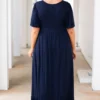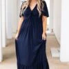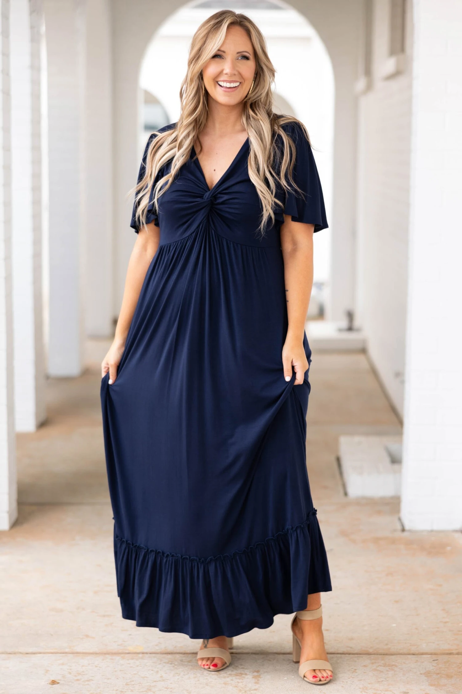 This beautiful maxi absolutely belongs in your closet! The solid navy color is perfect for any event and the wrap bust is so trendy! This cutie has a ruffle hem for a little added sweetness! Style it with some amazing heels and a great purse to look and feel like a million dollars!