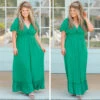 This beautiful maxi absolutely belongs in your closet! The bold palm color is perfect for any event and the wrap bust is so trendy! This cutie has a ruffle hem for a little added sweetness! Style it with some amazing heels and a great purse to look and feel like a million dollars!