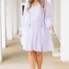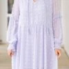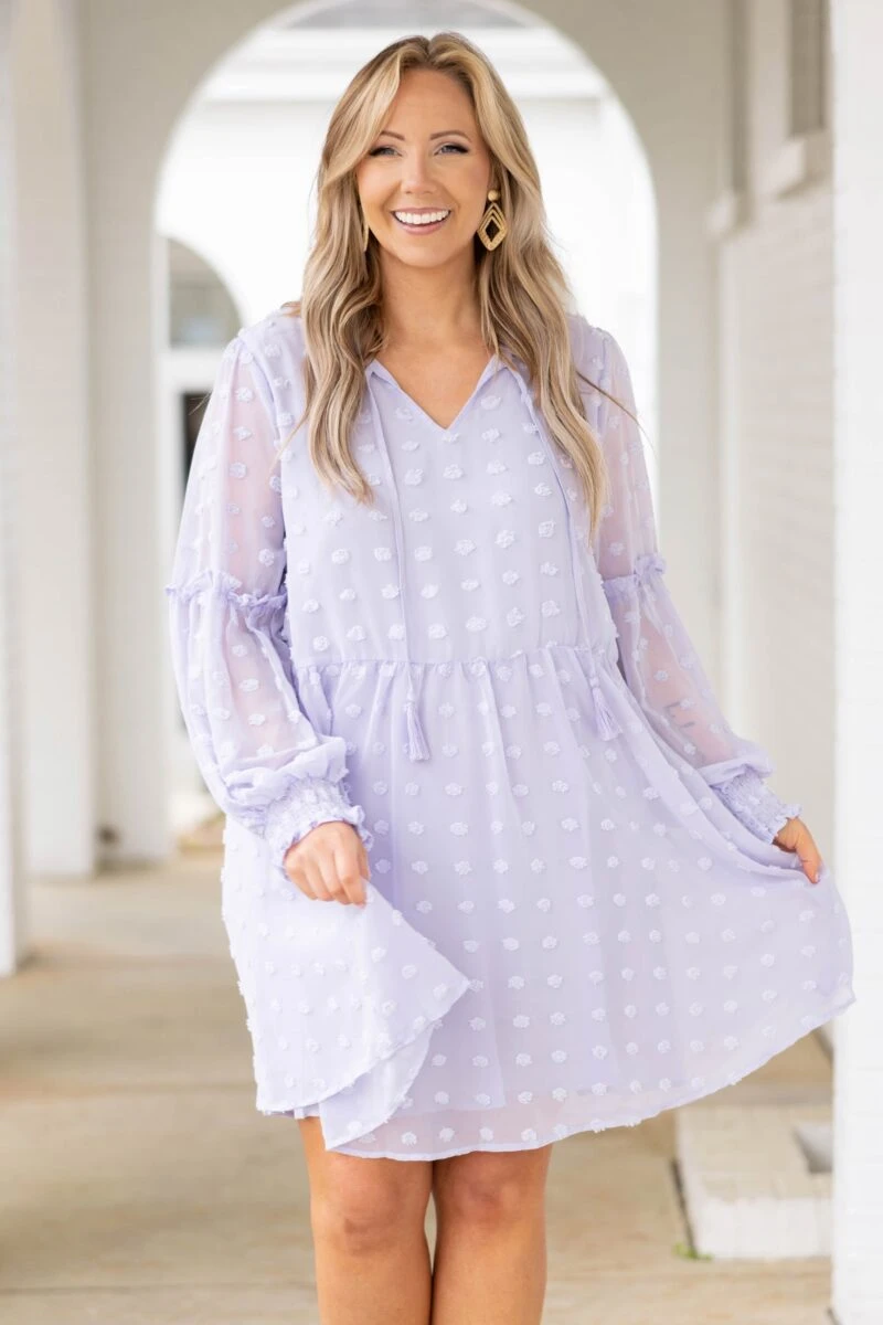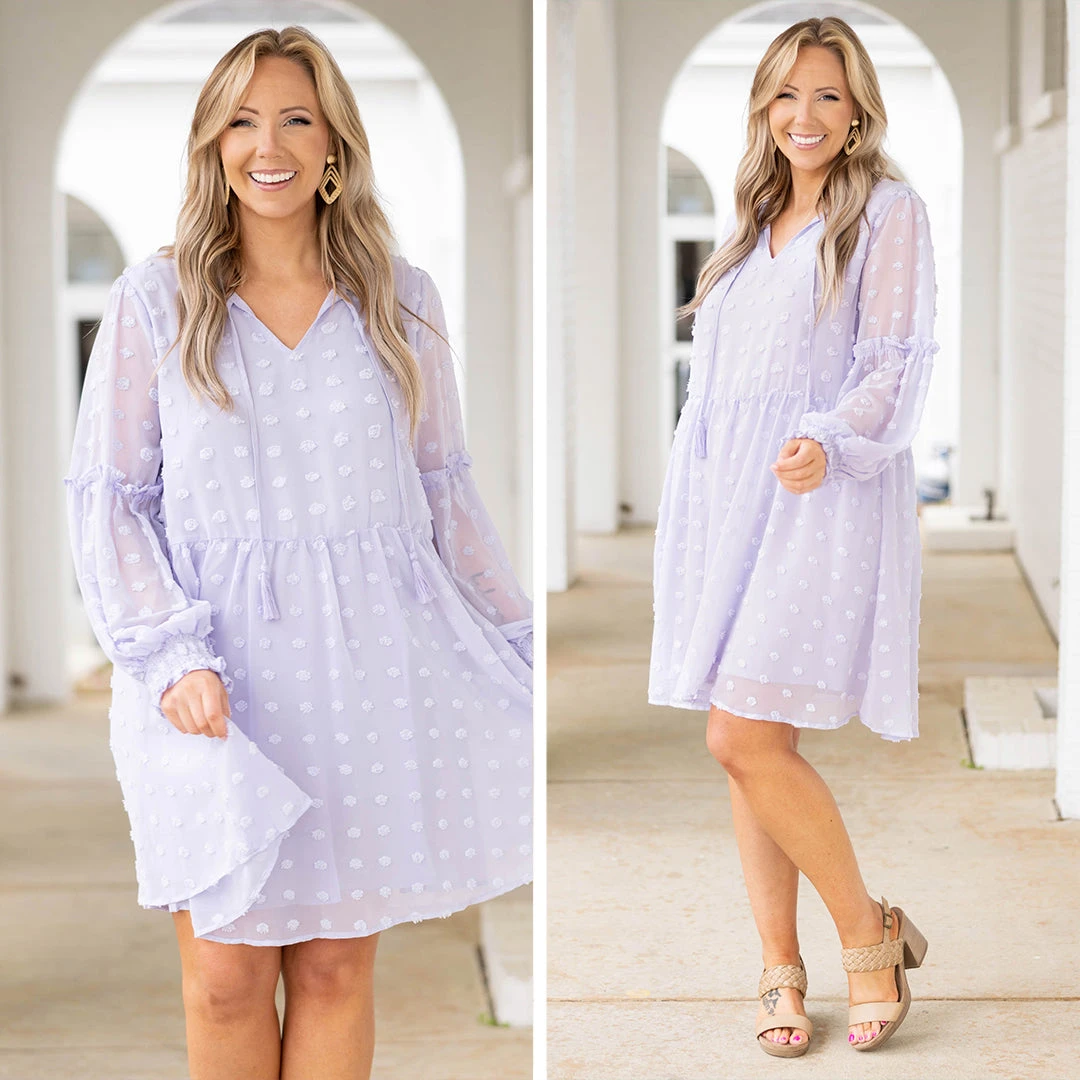 Consider yourself blessed to get this dress before it’s gone! It features a beautiful lavender color that is sure to be a classic look and stand out for every occasion! The raised dot pattern is so on-trend and the sheer balloon sleeves are the perfect added touch! This dress is figure-flattering for all body types and comfortable for all-day wear! Simply pair this dress with your favorite heels and accessories for a chic, trendy outfit!