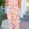Bloom with good vibes in this mesmerizing maxi! This beauty has a strapless design and an orange-blue combo floral pattern make it perfect for a walk along the beach! Stand out in this vibrant, flowy dress!