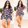 Bloom into this summer season in this top! This top has a pretty floral pattern with neutral colors you can style for every occasion! It’s comfortable for all-day wear, has a flowy fit, and features the cutest flutter sleeves! Pair this top with skinnies and a cozy cardigan for an effortlessly chic look!