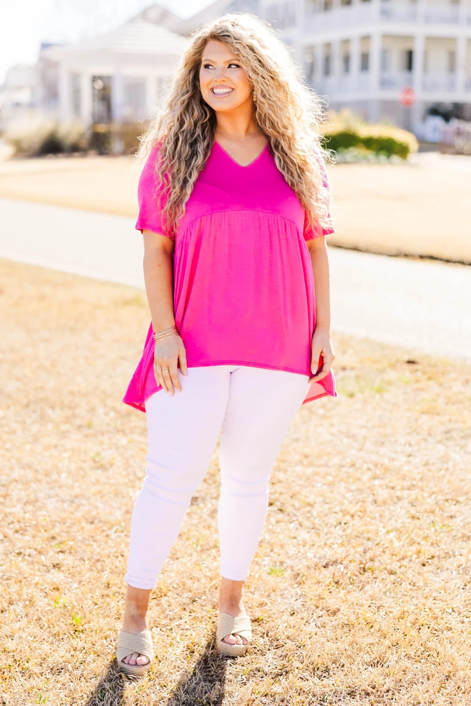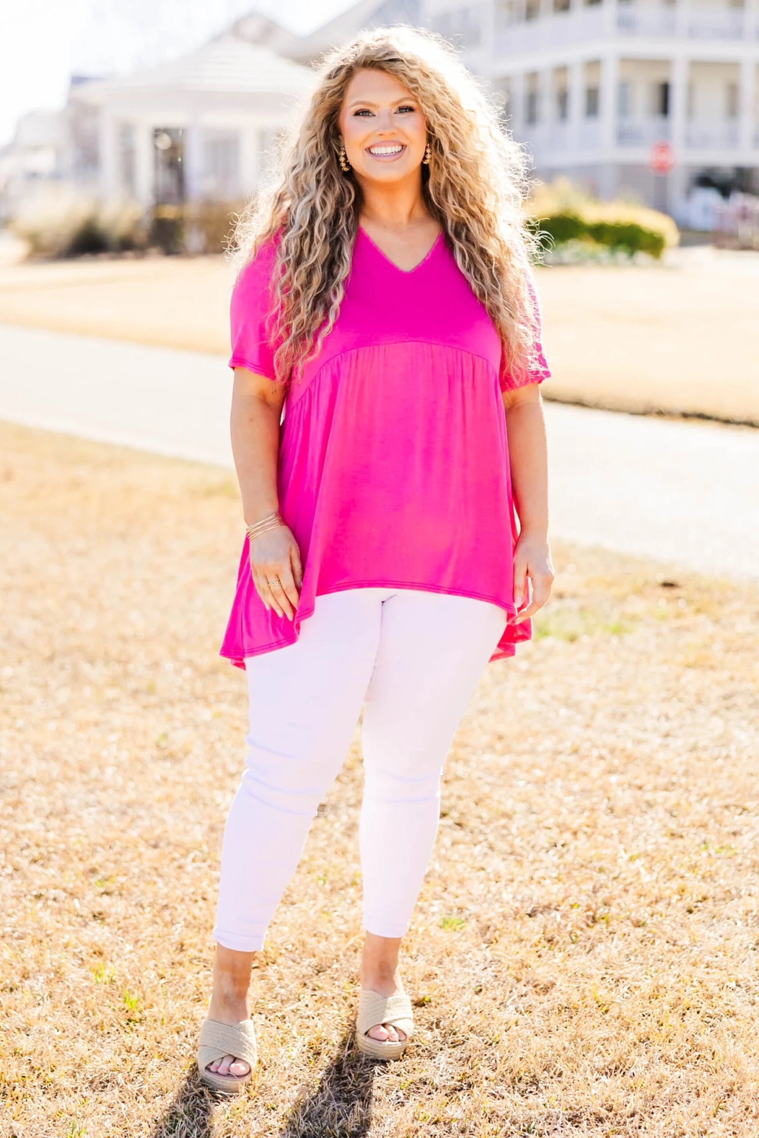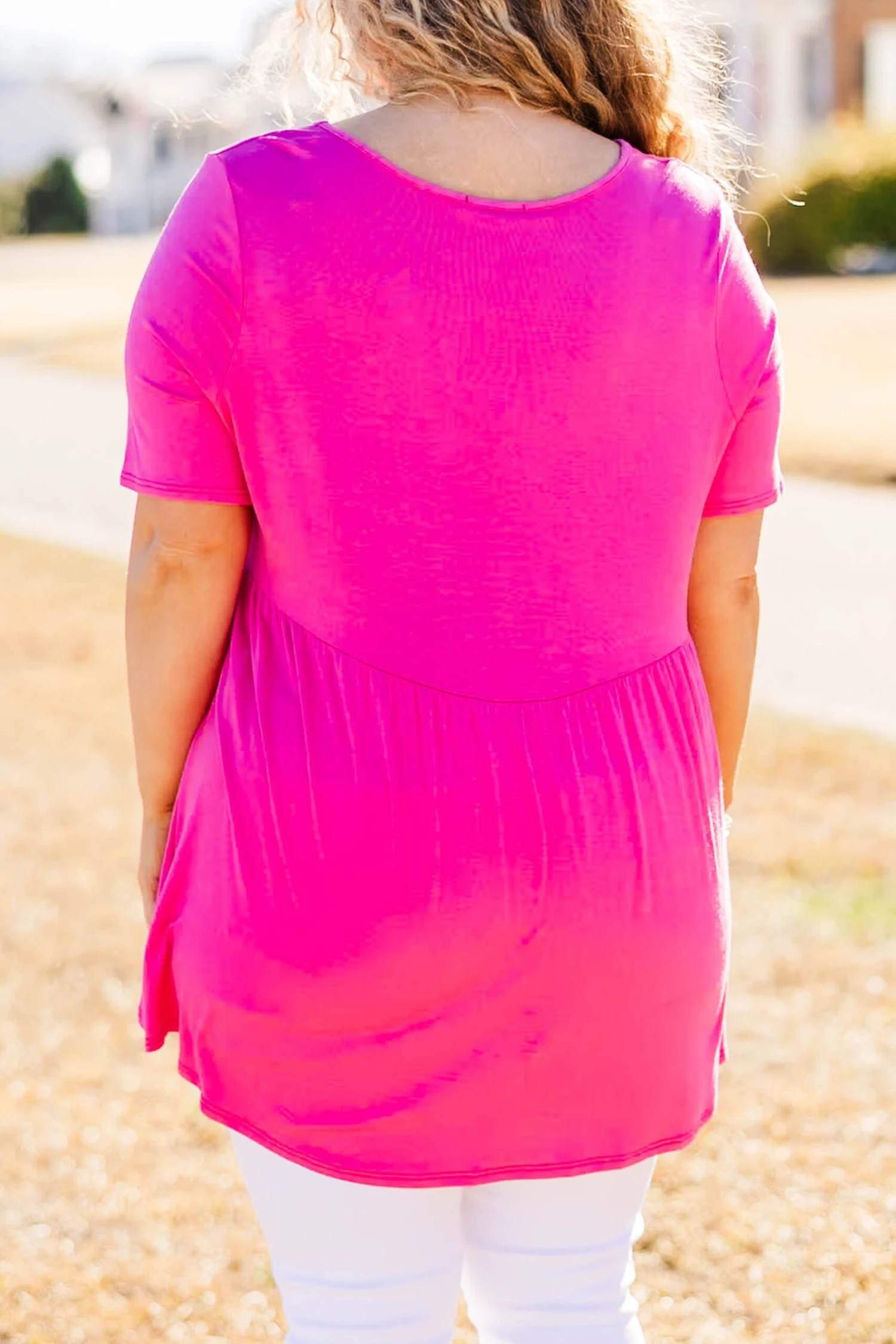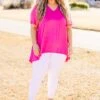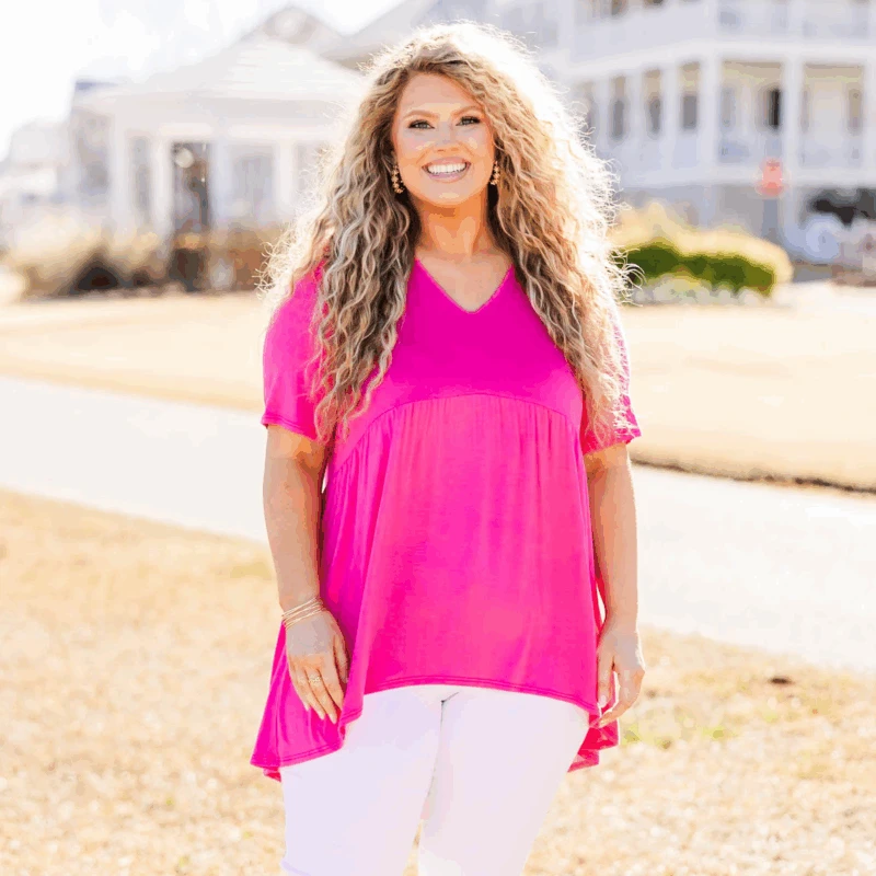 We are so in love with this top! This babydoll top features a flowy fit and bold pink color, combining effortlessly for a flattering and versatile look! It is a must-have in any wardrobe, offering both comfort and style! Embrace a timeless and elegant aesthetic with this top!
