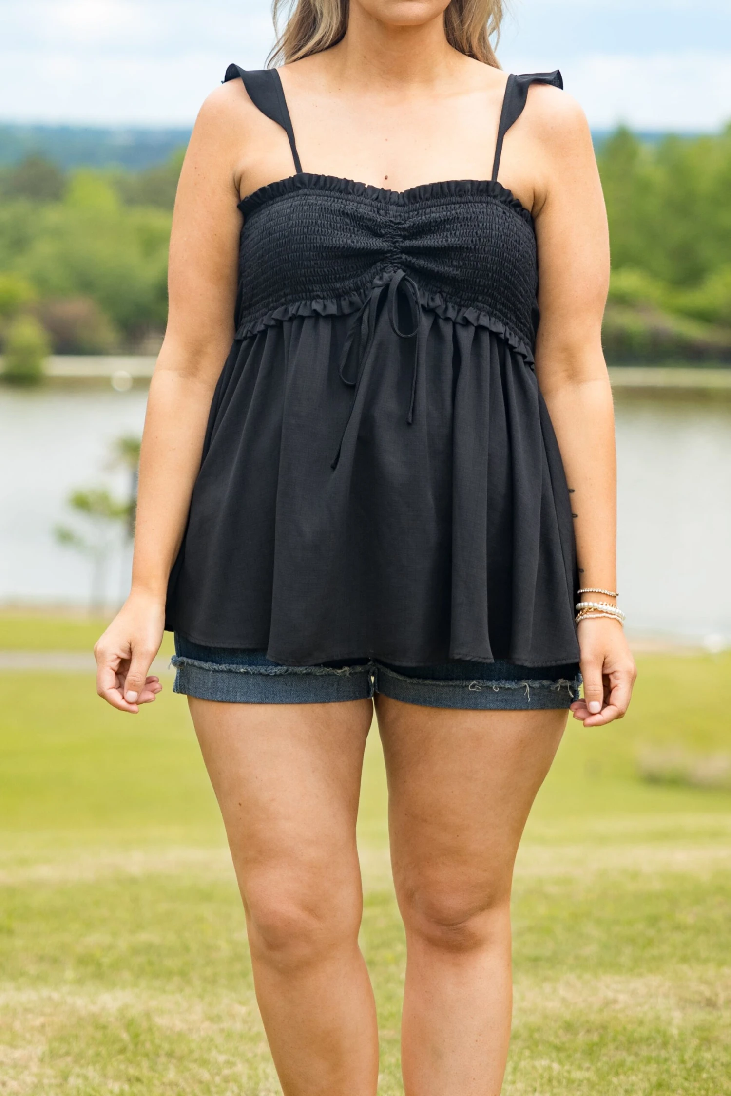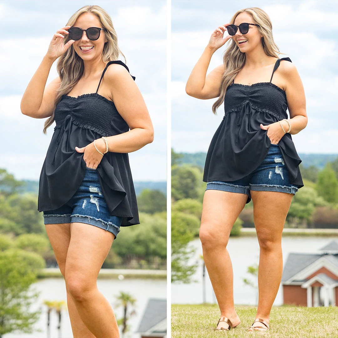 This top is sure to be a staple in your wardrobe! Crafted from a soft fabric blend, it features a smocked bodice for a comfortable fit, spaghetti strap detailing, and a neutral black hue! Perfect for a casual day out!