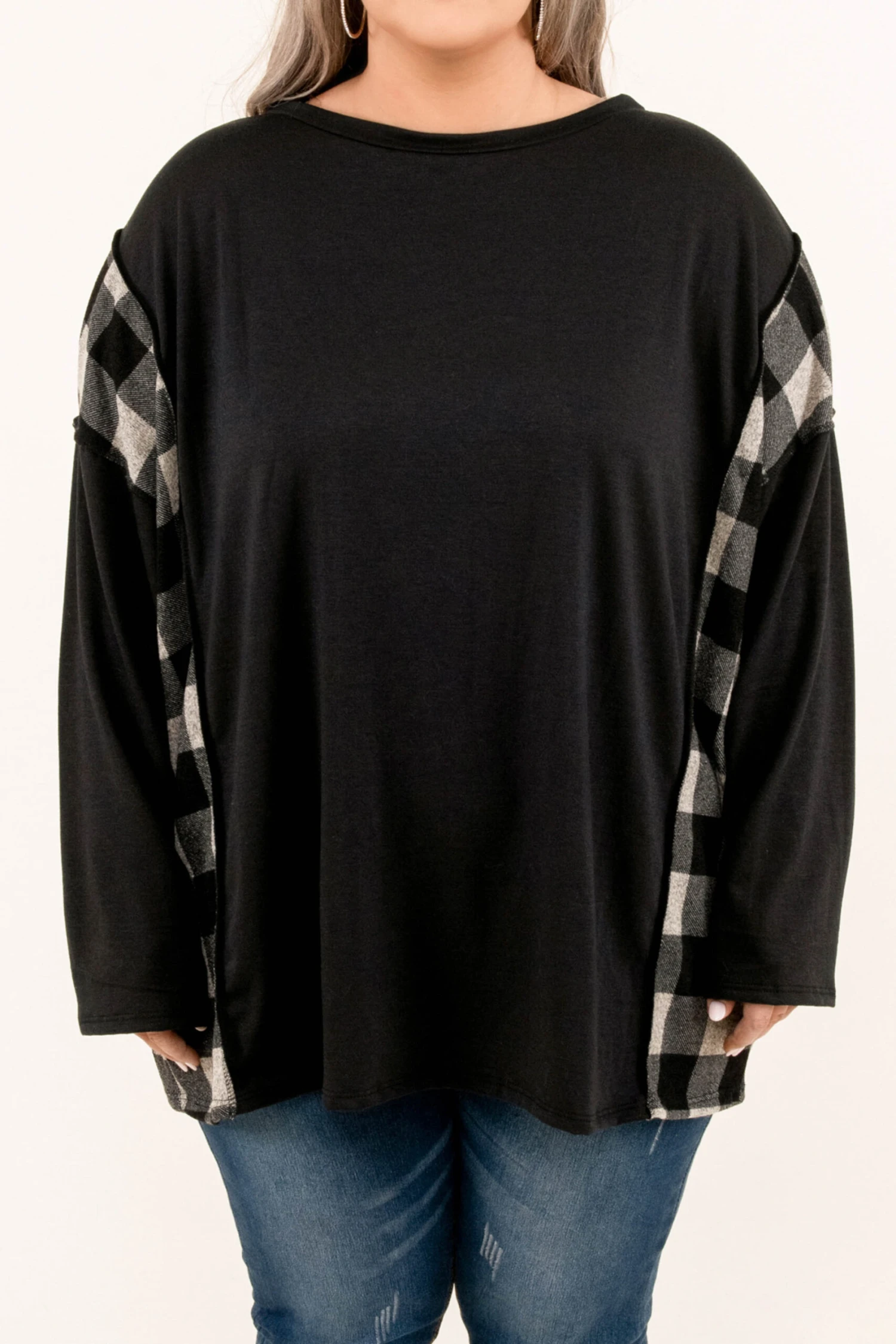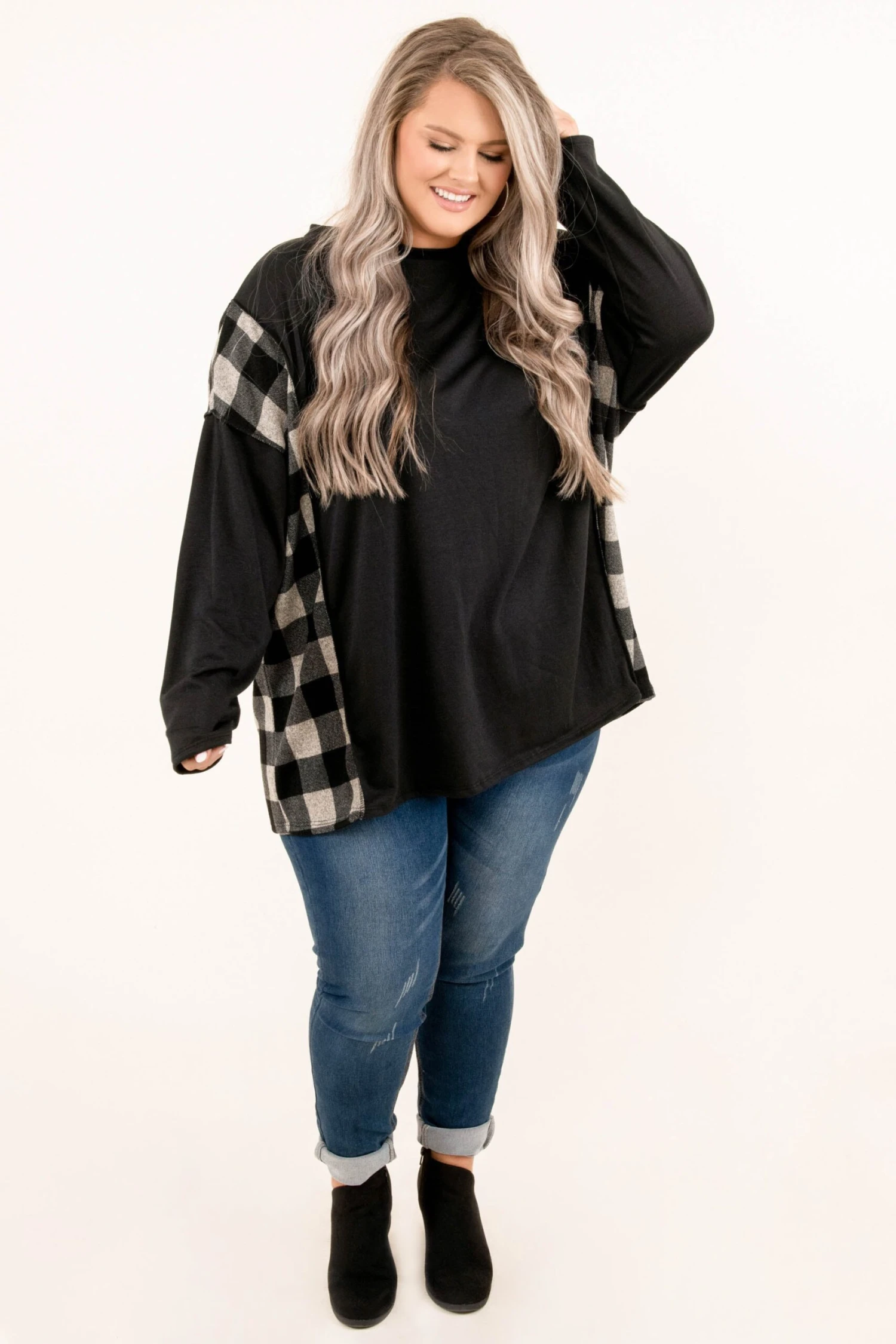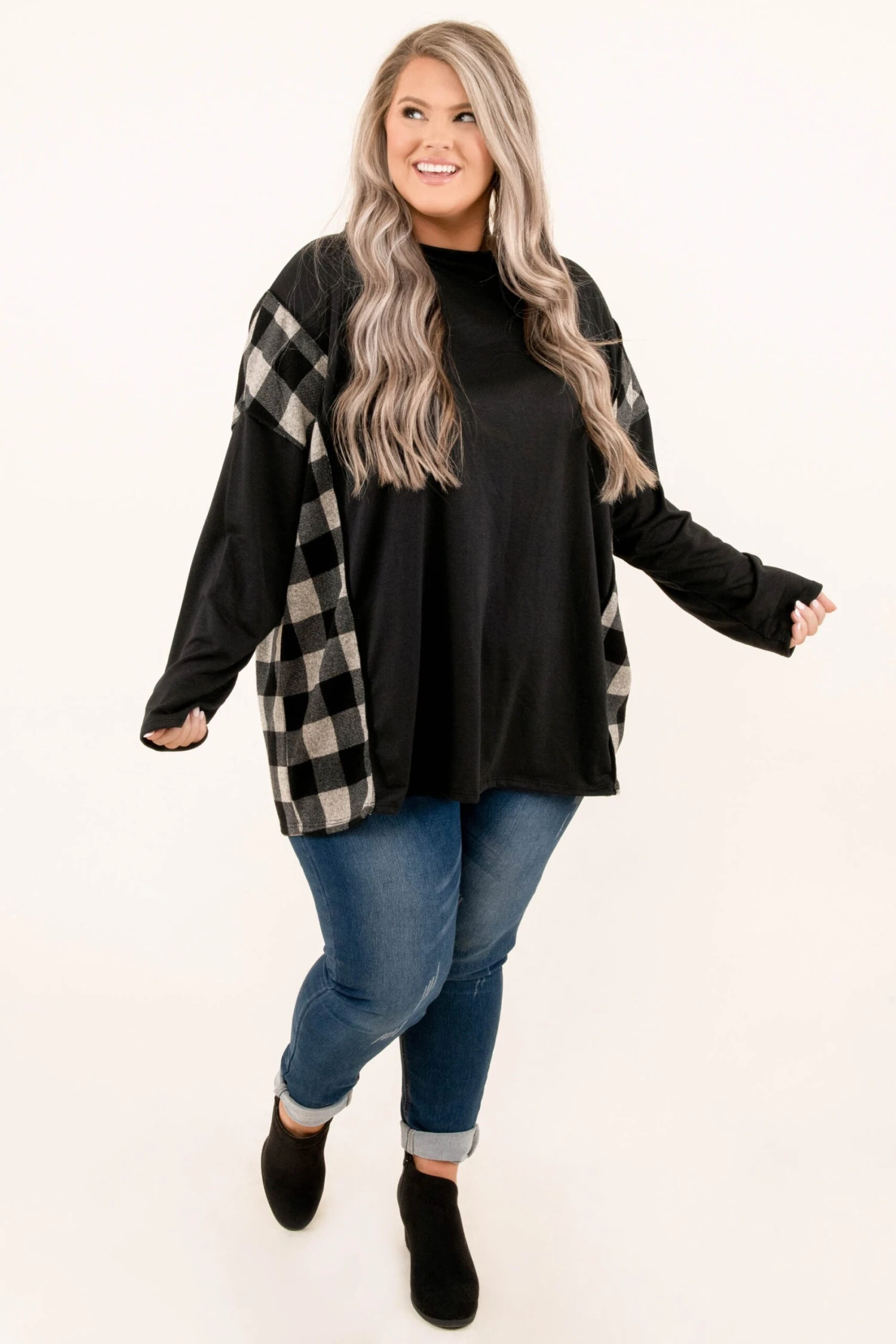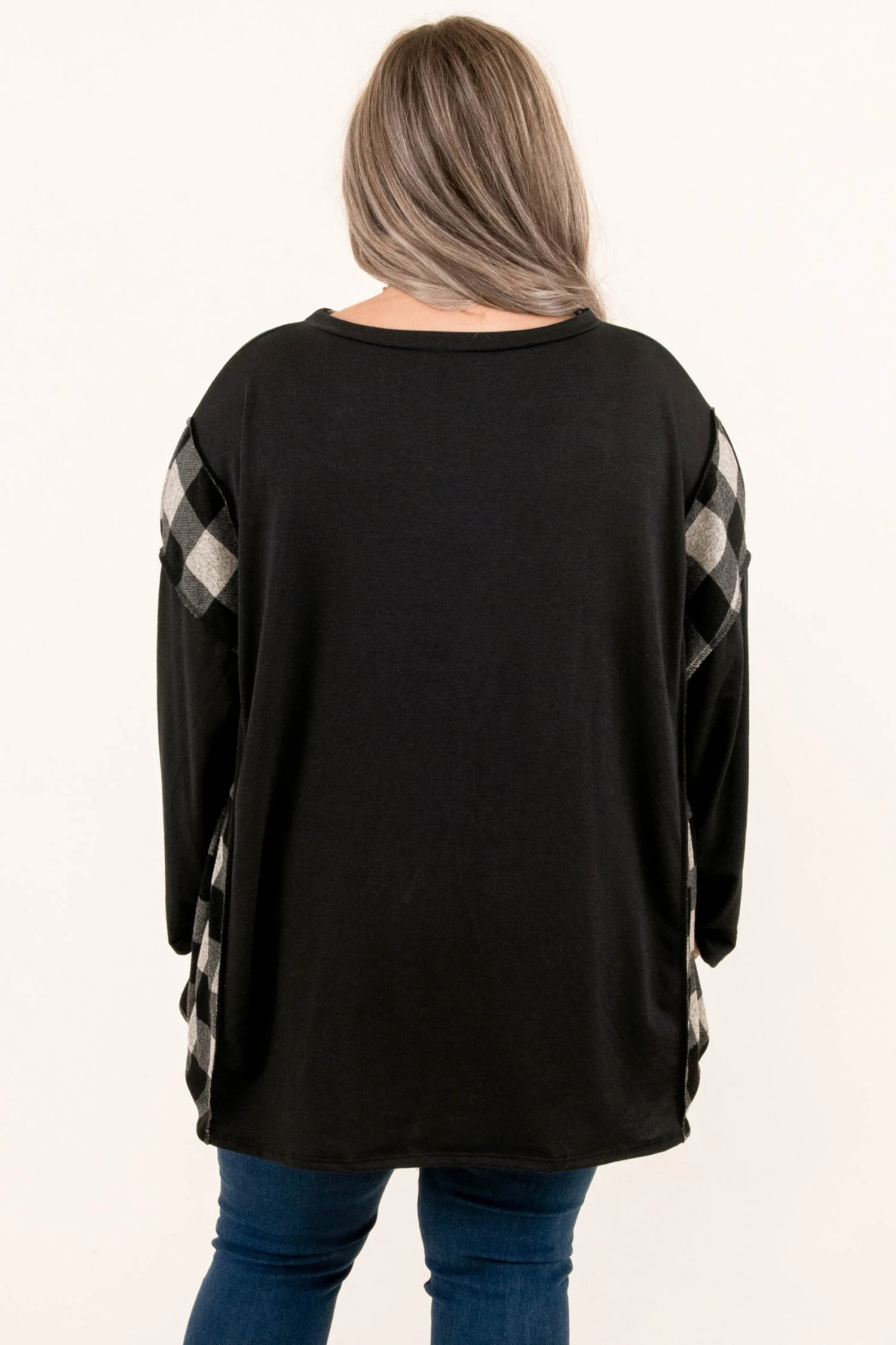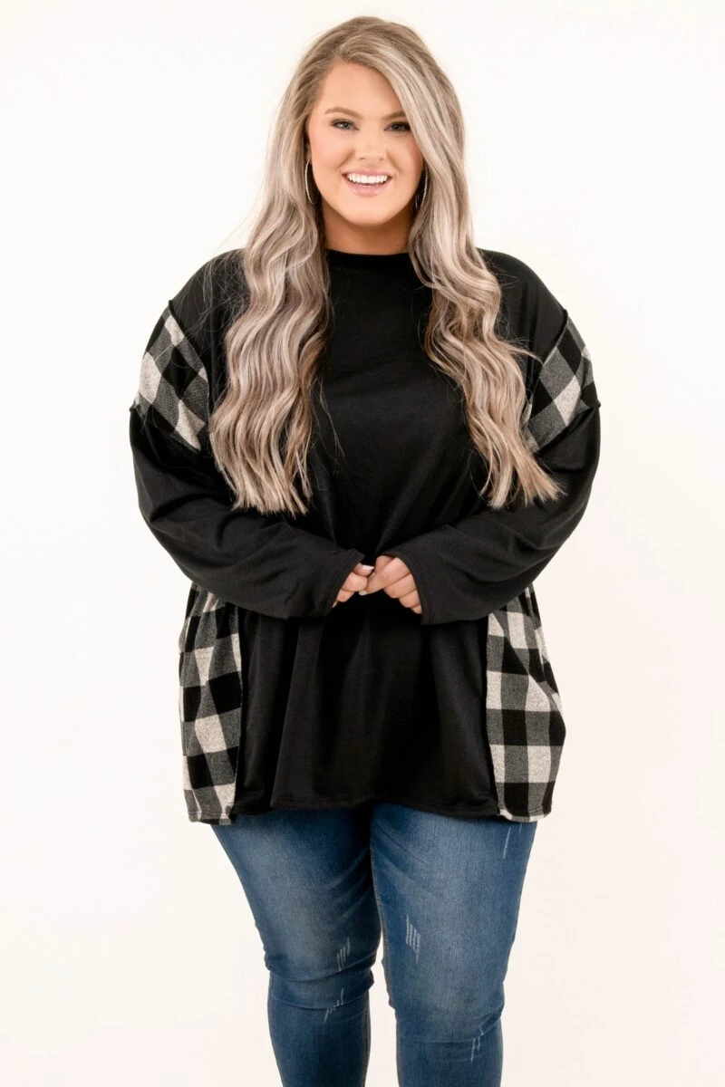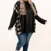 We love this top! You are going to need it! It has plaid sleeves and a solid charcoal body! It’s a great comfy, casual top! Toss it on with your fave jeggings and booties for an effortless outfit!