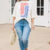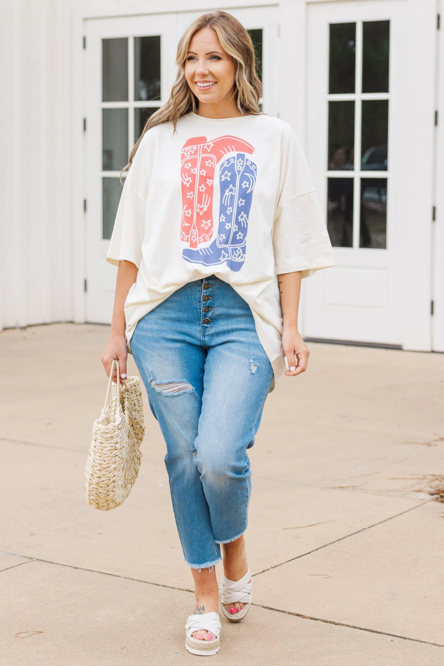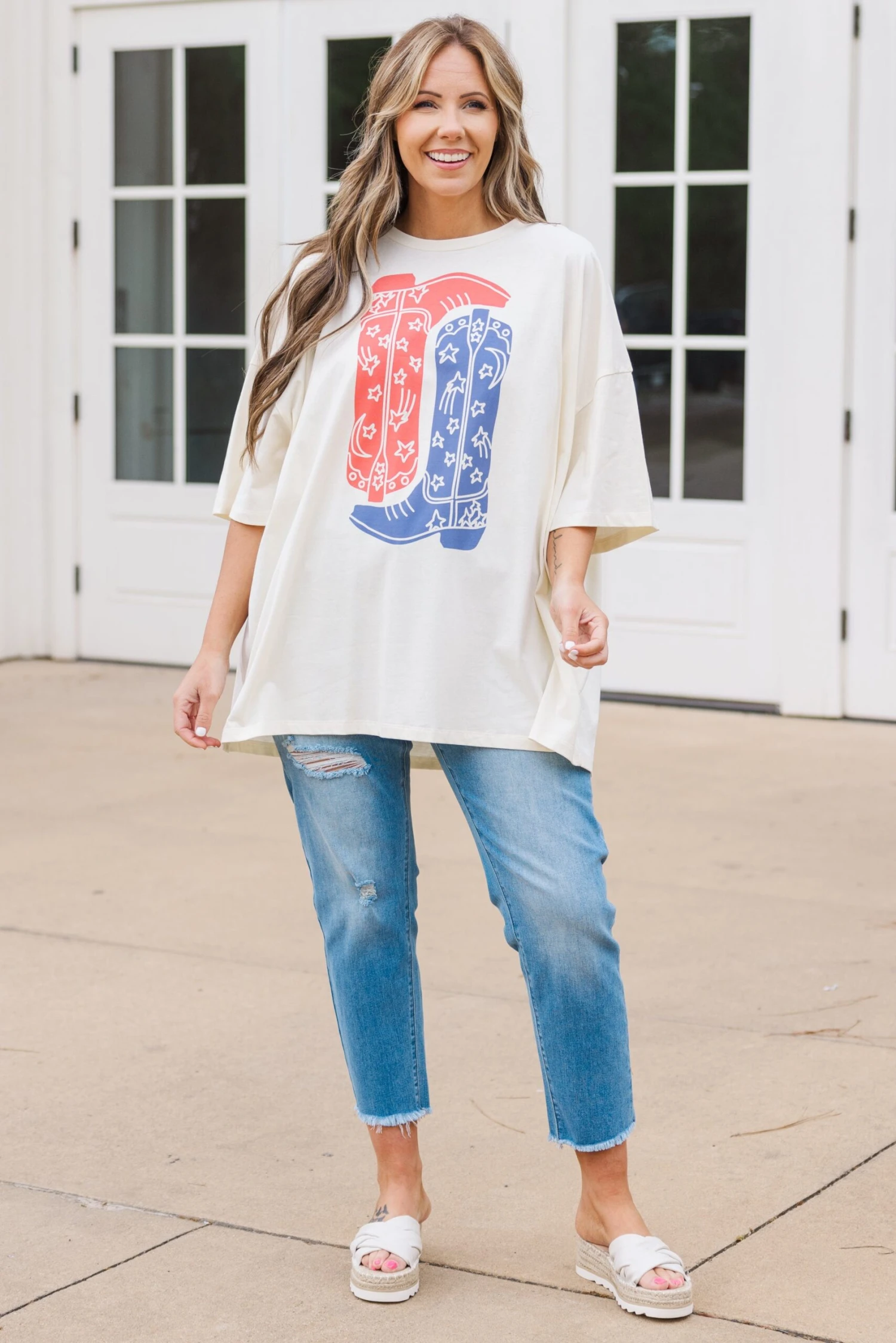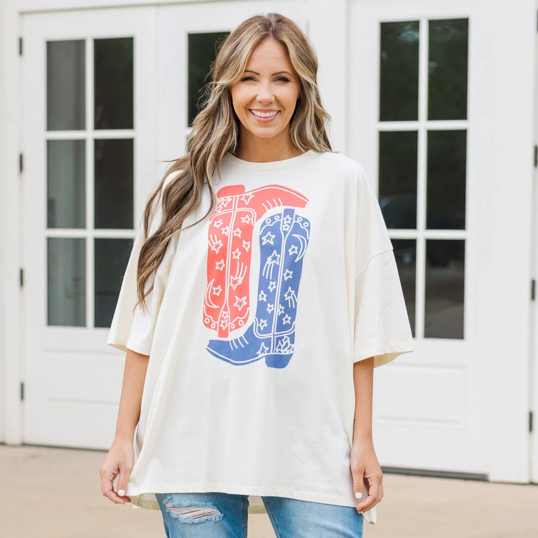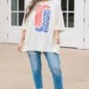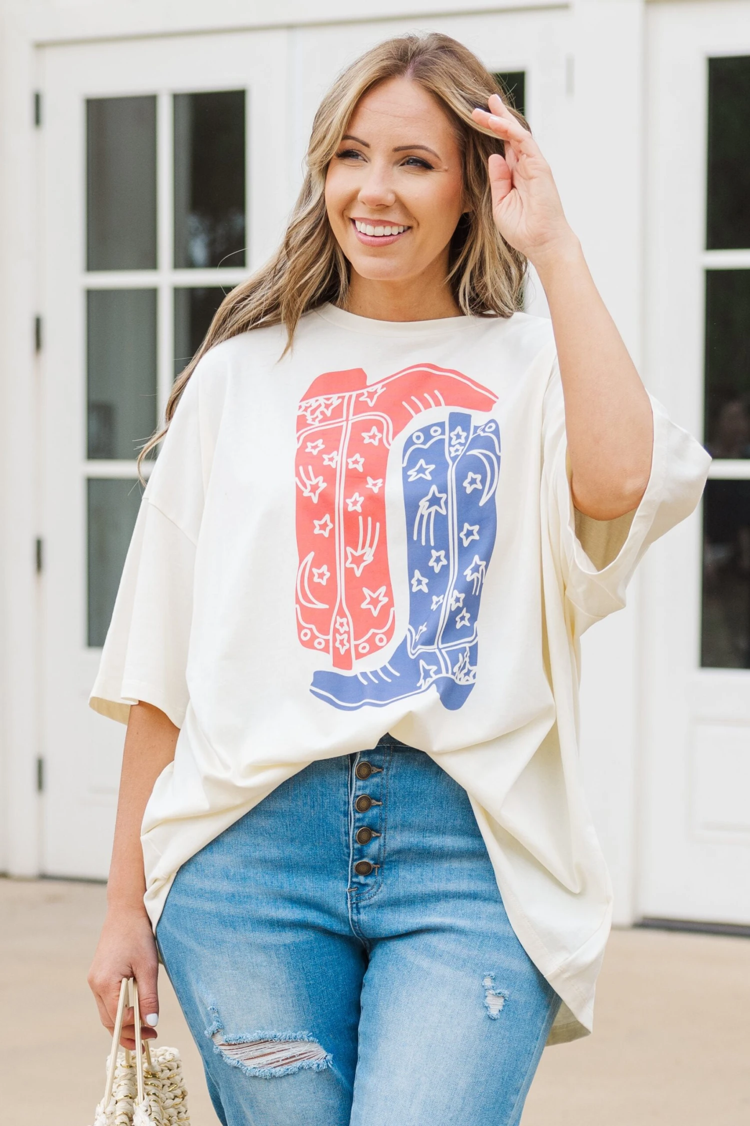 Scoot those old tees over and add this cute-tee to your wardrobe! This ivory tee features an adorable graphic and an oversized fit that pairs perfectly with skinnies or leggings! Experience comfort and style with this must-have addition to your wardrobe!