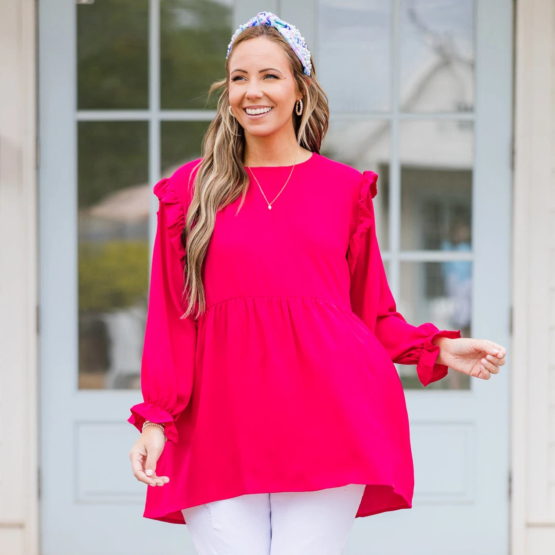 All eyes will be on you in this fabulous top! Adorned with ruffle detailing and featuring bubbly bubble sleeves, this top will elevate your style to a whole new level! A perfect addition to your wardrobe for a flowy and fun look!