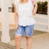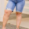 We simply adore these shorts! Expertly crafted with a medium wash and distressed design, these cuties offer both style and comfort! The perfect fit for any occasion, these shorts will effortlessly elevate your wardrobe!