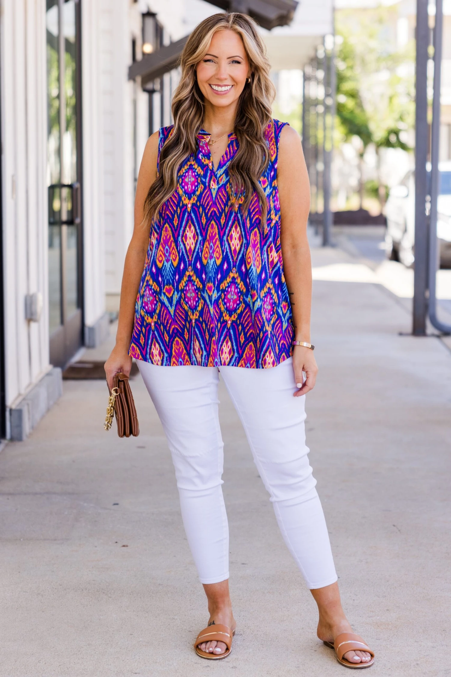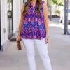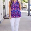 Unleash your style with the Breaking Free Top! It’s sleeveless and made of wrinkle-free fabric, so you can stay stylish on the go. The bold Aztec print adds a unique touch, pairing perfectly with your favorite shorts or denim!