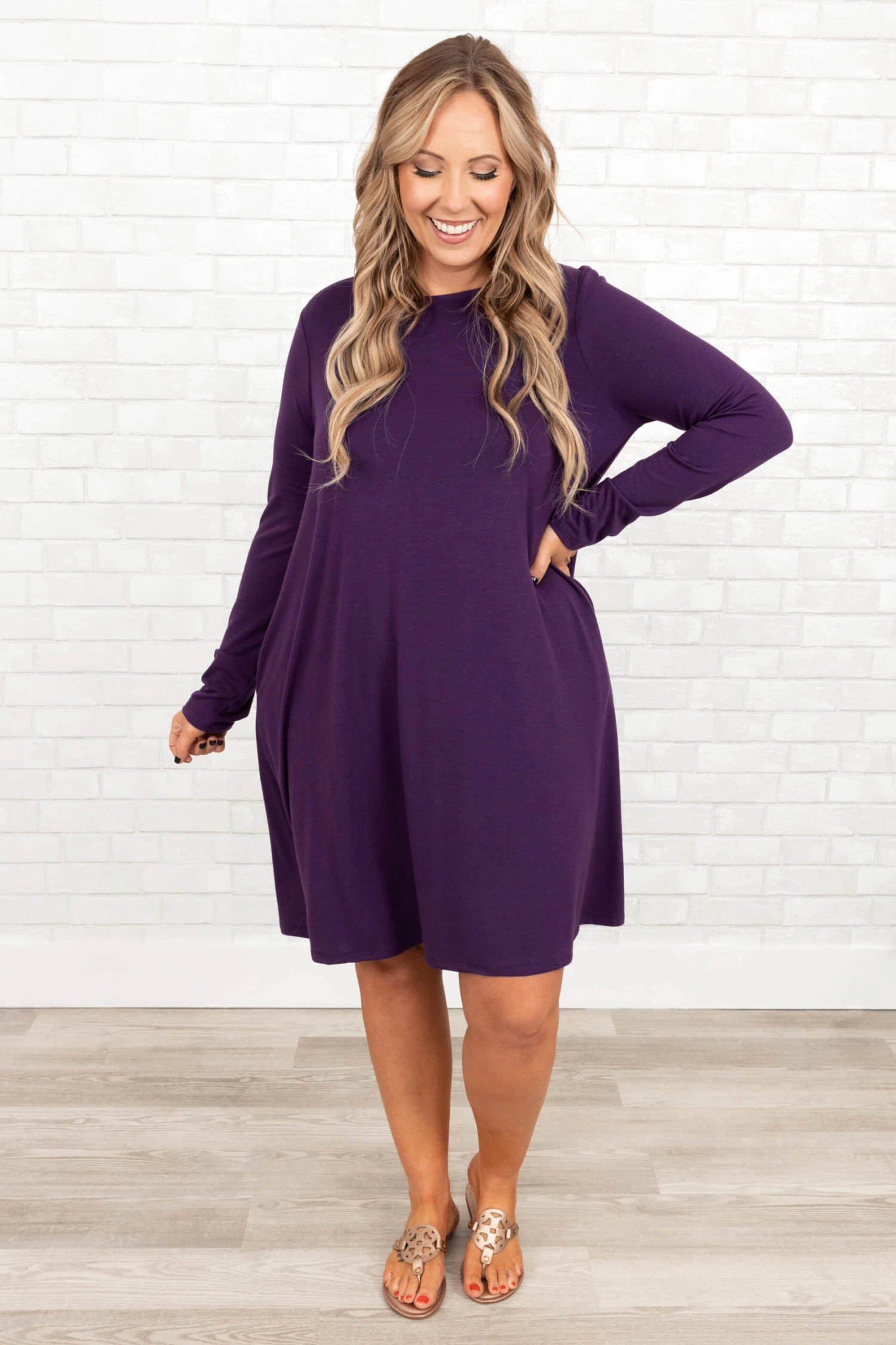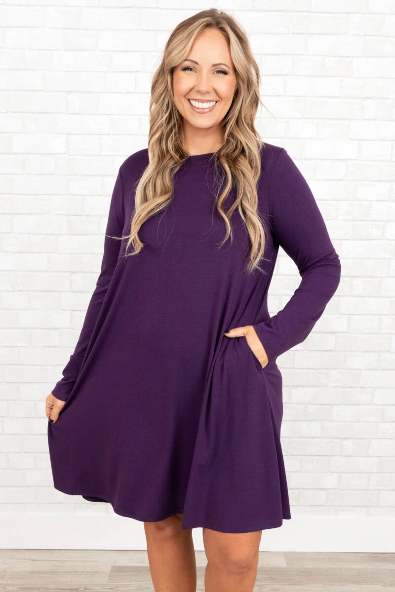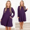 This dress is simply breathtaking! The gorgeous dark purple color is so easy to pair with all of your favorite accessories! Did we mention this beauty has POCKETS?! The stretchy, flowy fit is great for any occasion! Style this dress with some cute sandals or wedges for a classic chic look!