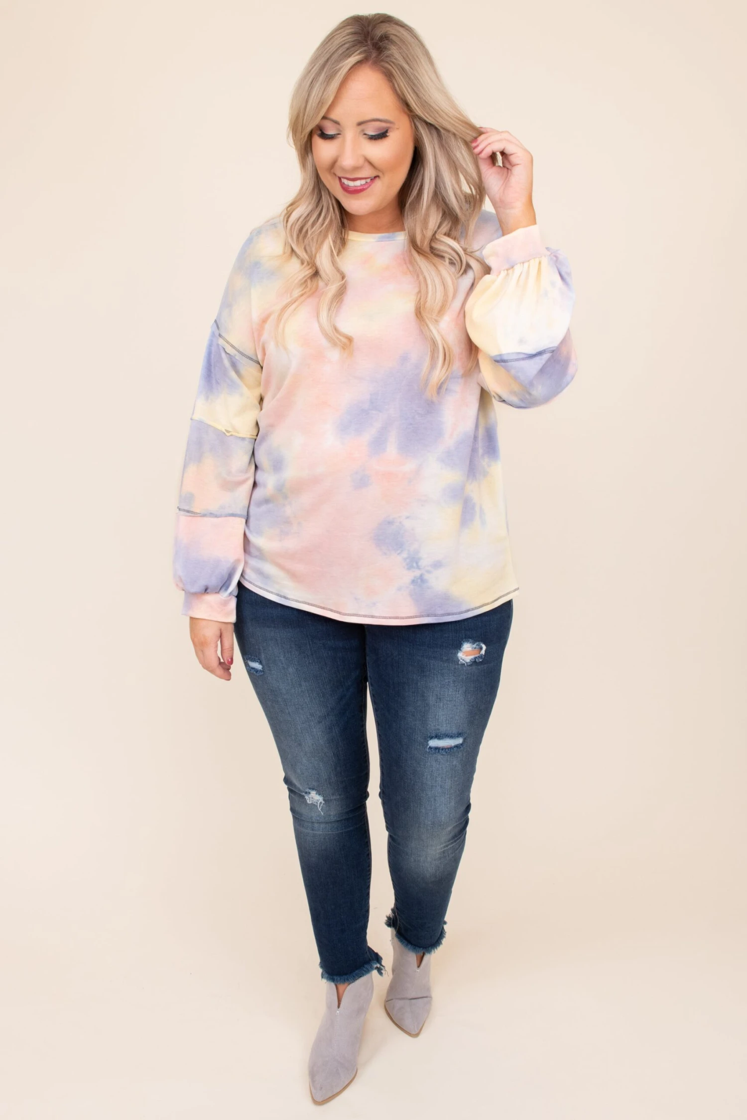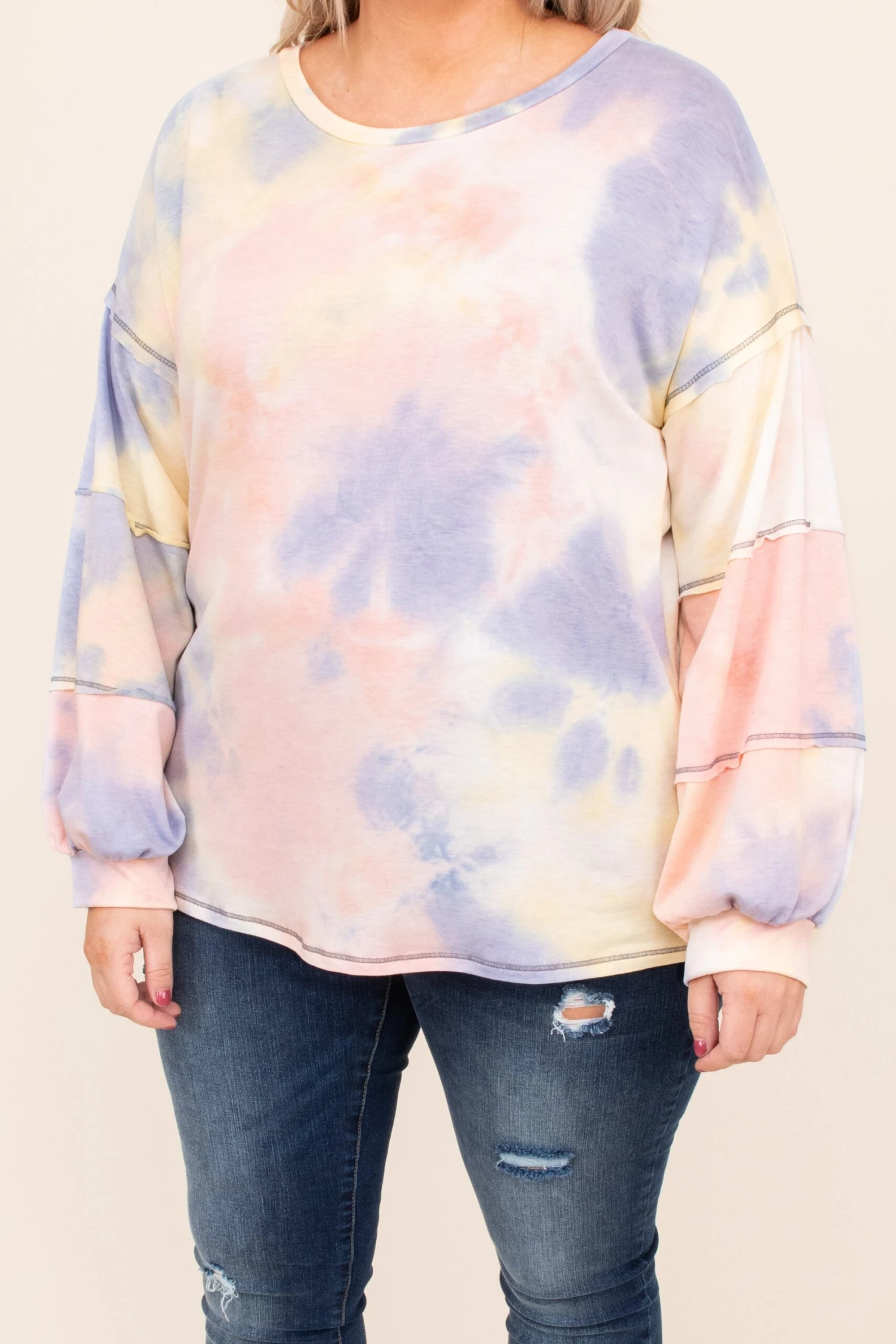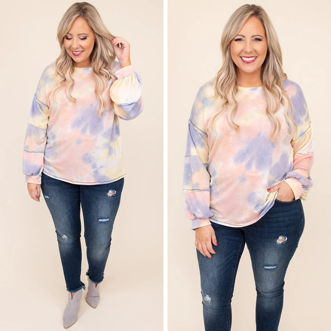 Live your best life when you’re wearing this top! This top has a trendy tie dye pattern with colors that are perfect for the season! It’s comfortable for all day wear, has a flowy fit, and features the cutest stitched sleeves! Style this top with skinnies and sneakers for an easy everyday look!Â