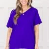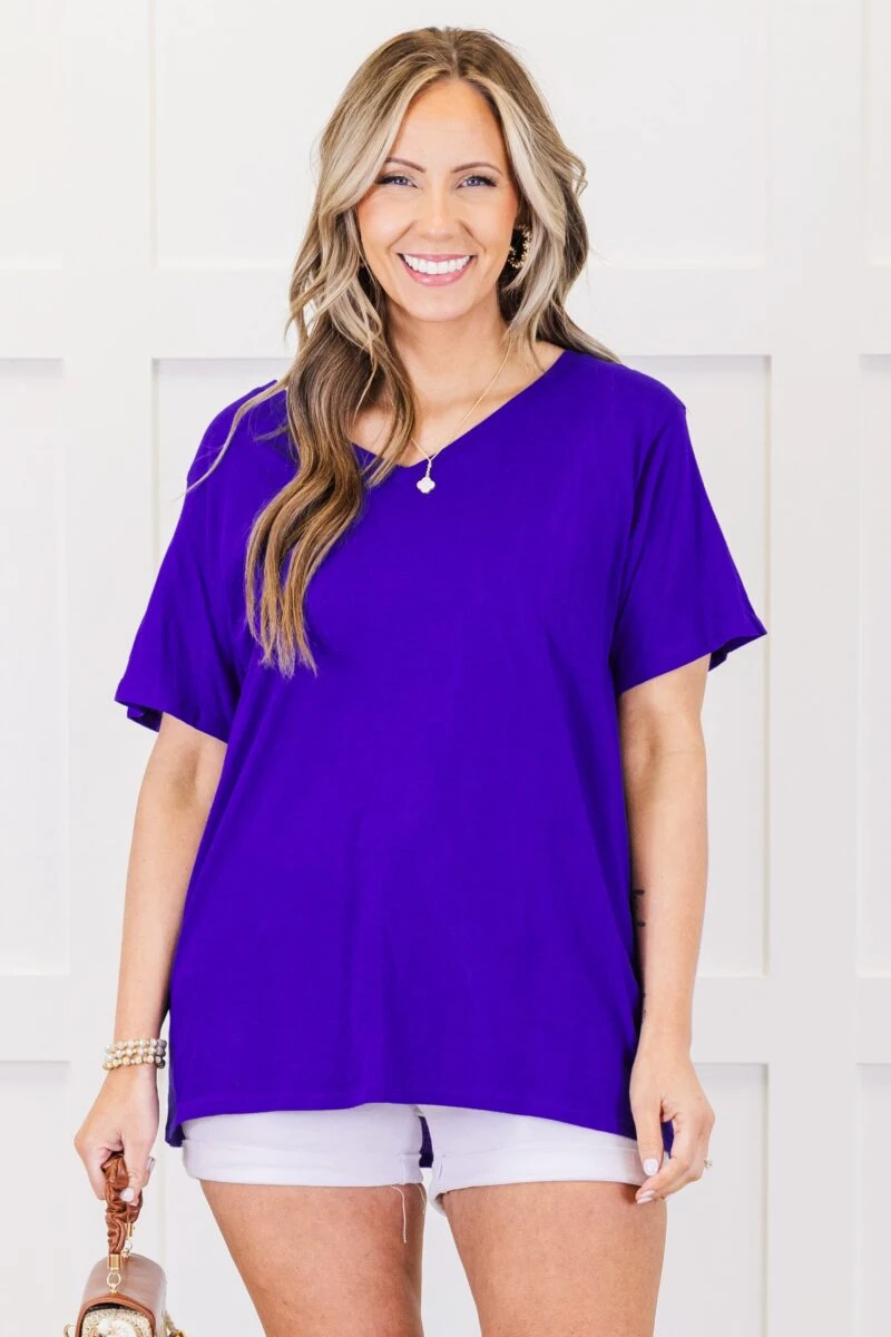 Introducing the Bright Days Tee in bright blue – a staple in your closet that will brighten up any day! This solid v-neck tee is sure to become your go-to for every occasion! Say hello to comfort, versatility, and endless style possibilities!