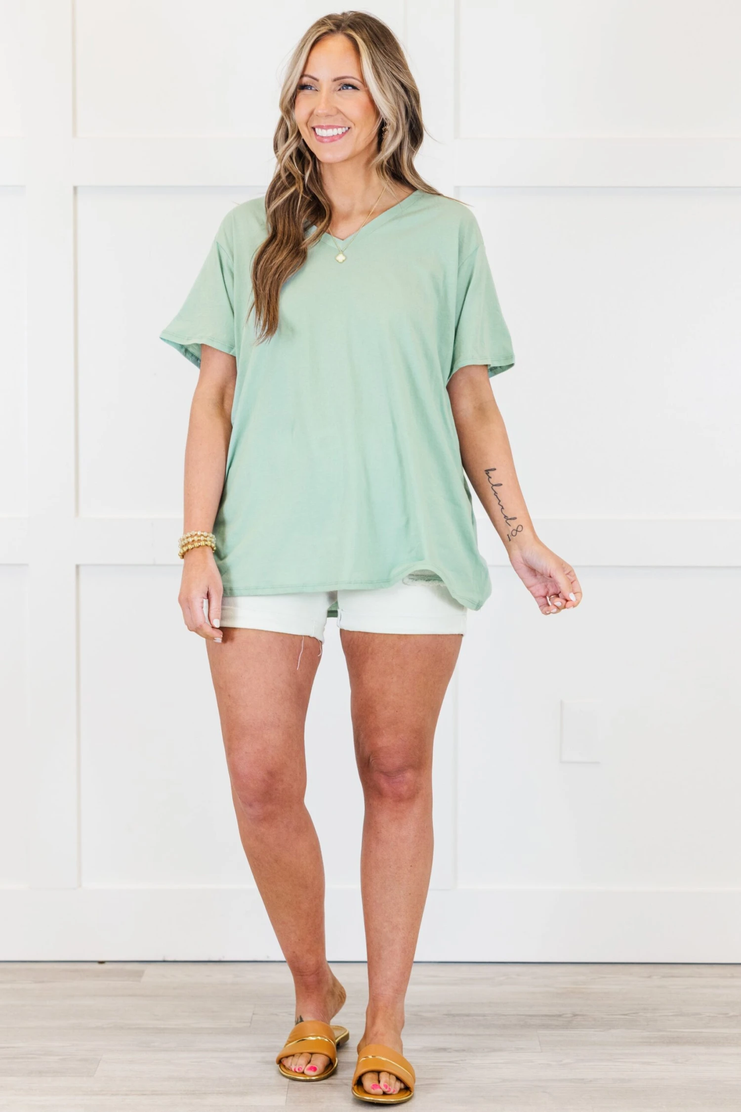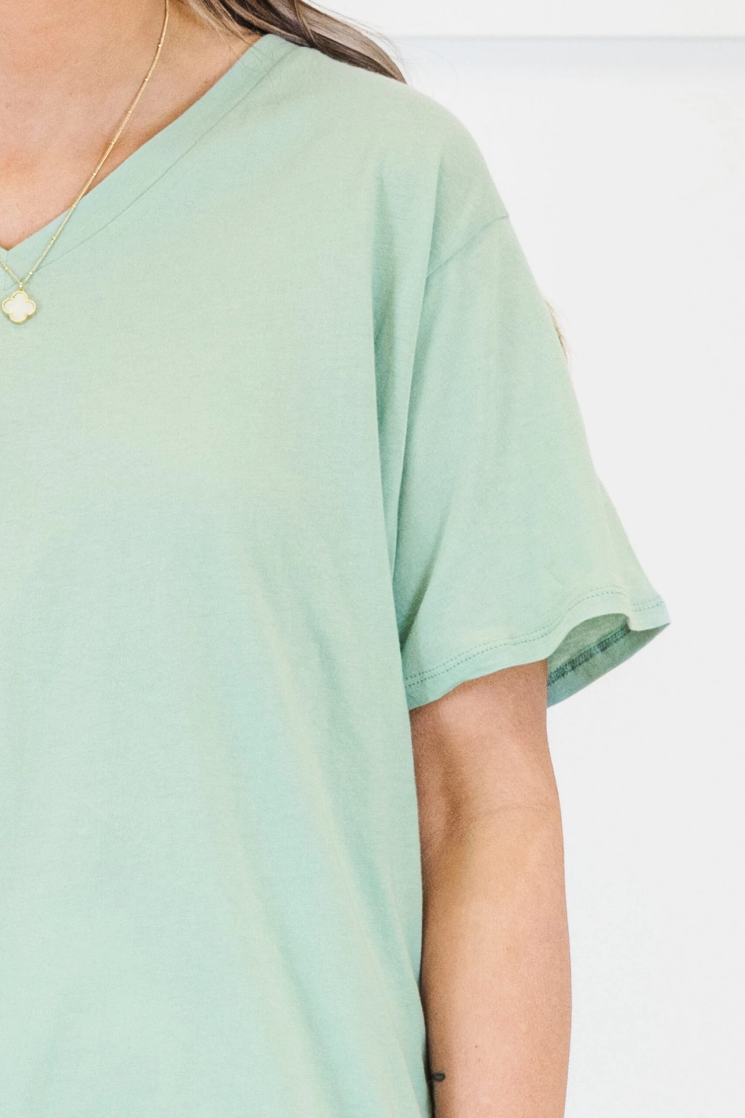 Introducing the Bright Days Tee in dusty green – a staple in your closet that will brighten up any day! This solid v-neck tee is sure to become your go-to for every occasion! Say hello to comfort, versatility, and endless style possibilities!