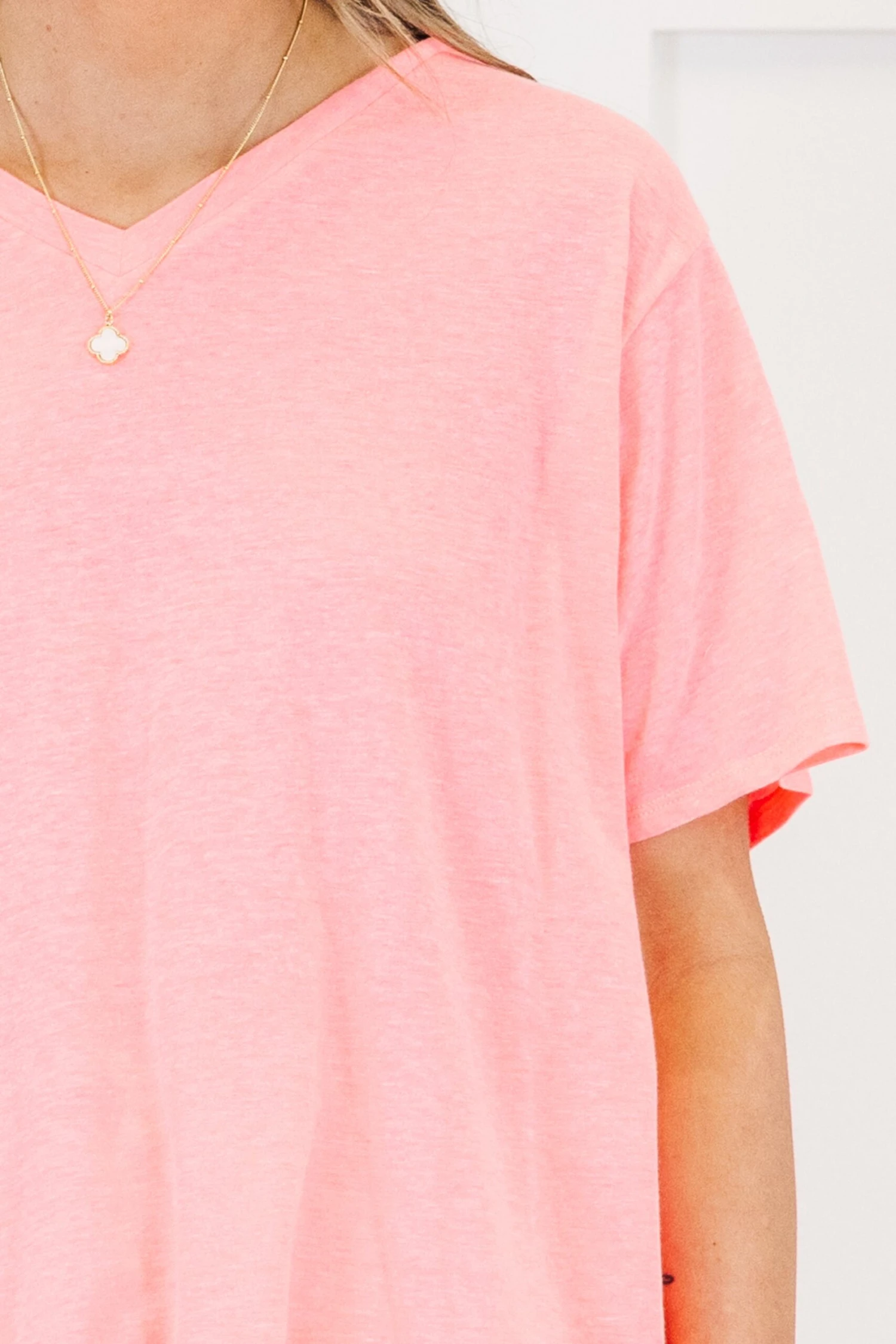 Introducing the Bright Days Tee in neon coral pink – a staple in your closet that will brighten up any day! This solid v-neck tee is sure to become your go-to for every occasion! Say hello to comfort, versatility, and endless style possibilities!
