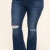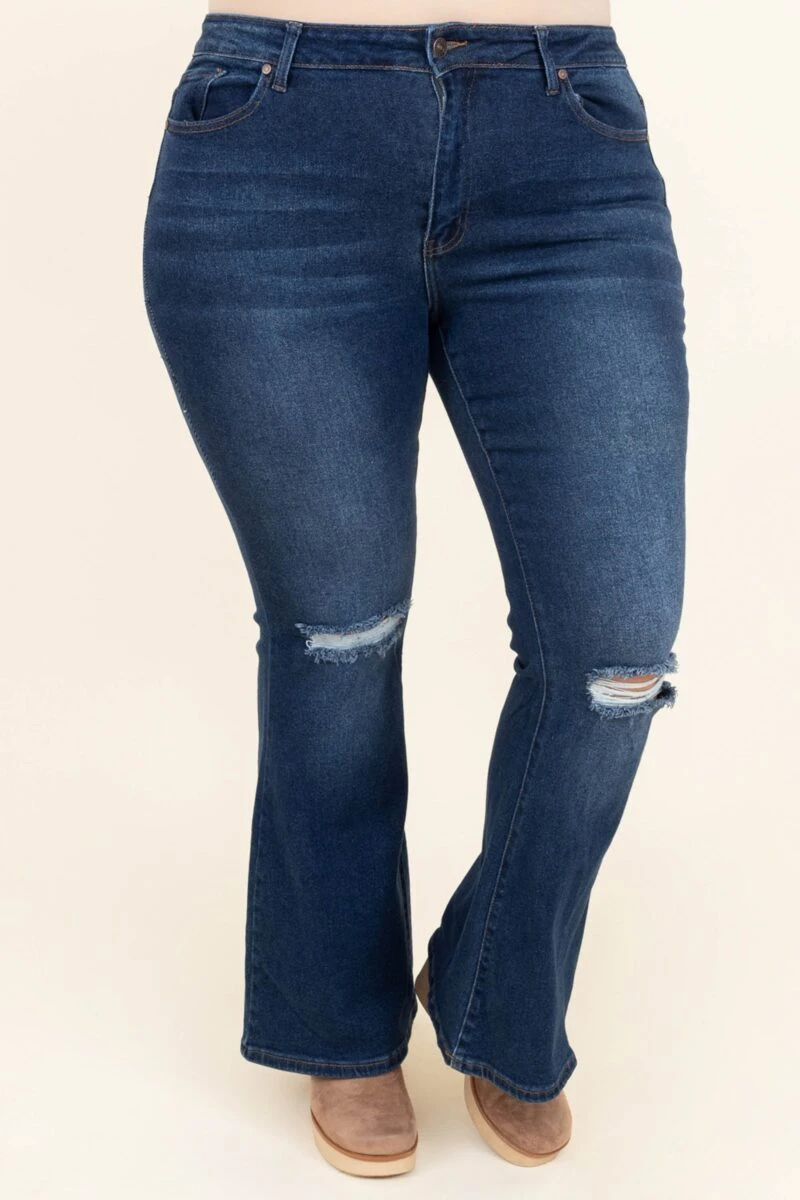 Take a stroll down the street in these gorgeous jeans! They have a trendy dark wash and a distressed design that is super chic! The flare style and figure flattering fit is just in time for the season! Style these jeans with a cute sweater and booties for a casual chic look!