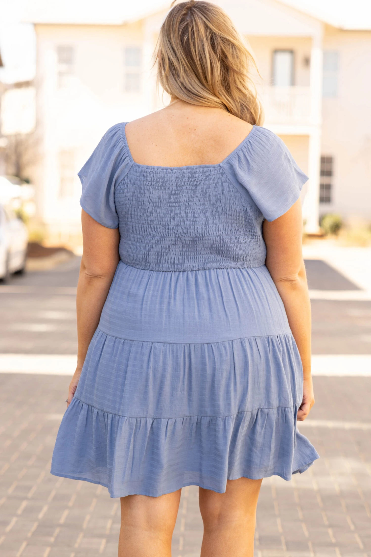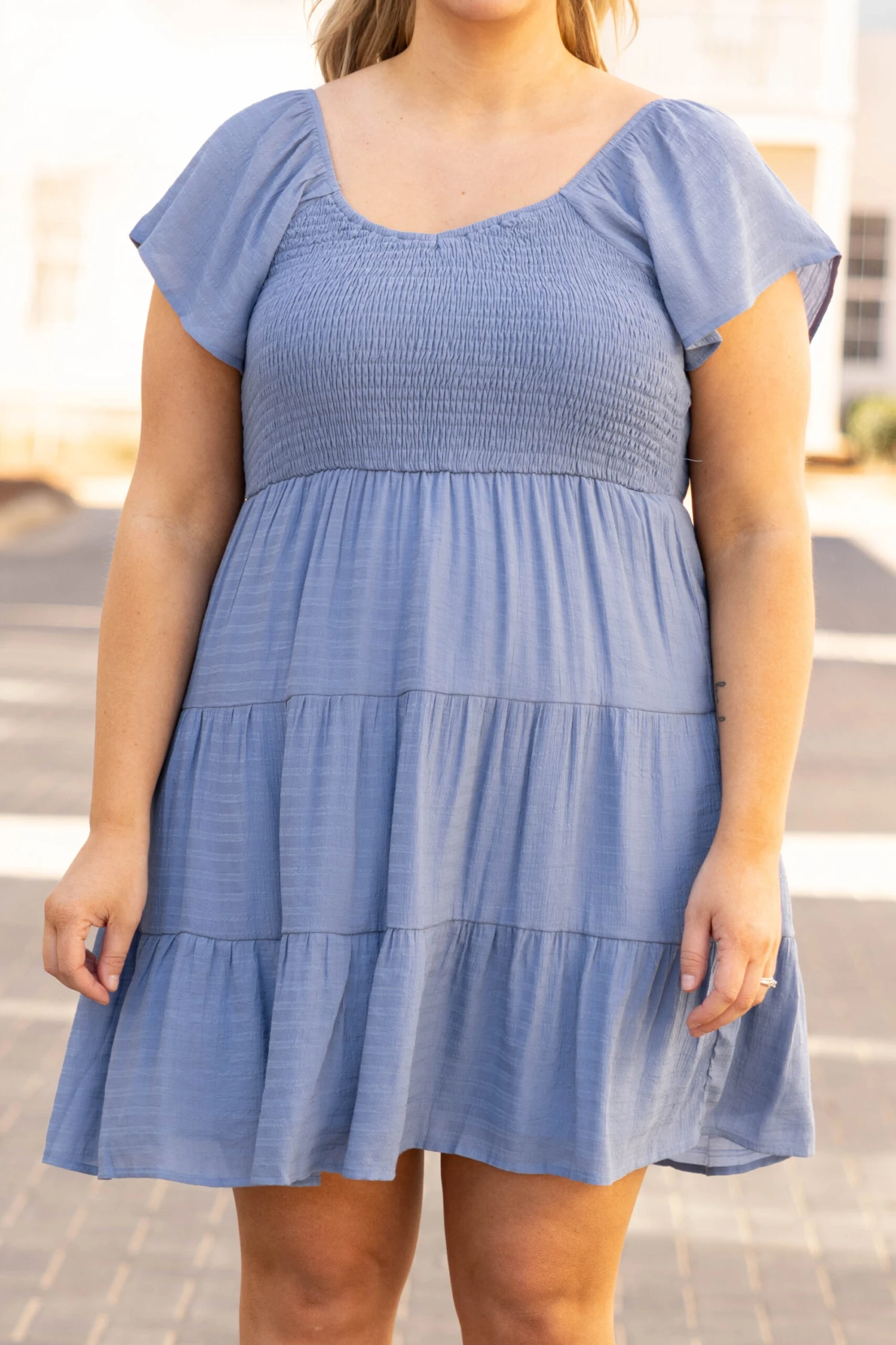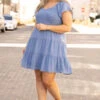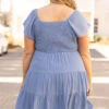 We love a good brunch party, and this is the perfect dress for one! The denim color is so fab and the tiered style with the smocked top is so flattering! The ruffle sleeves give this such a sweet feel! We love it paired with a cute headband and some great wedges for a super stylish look!